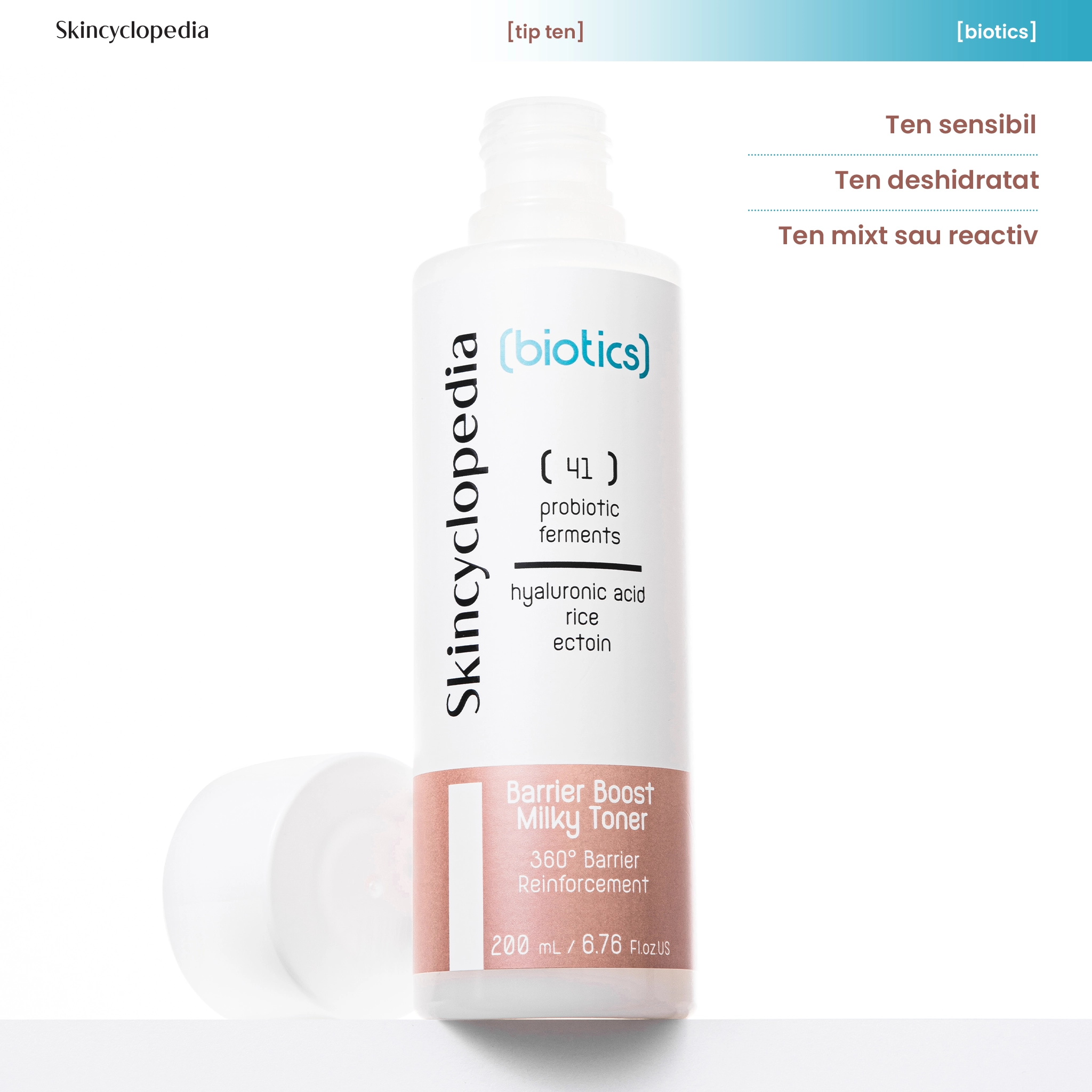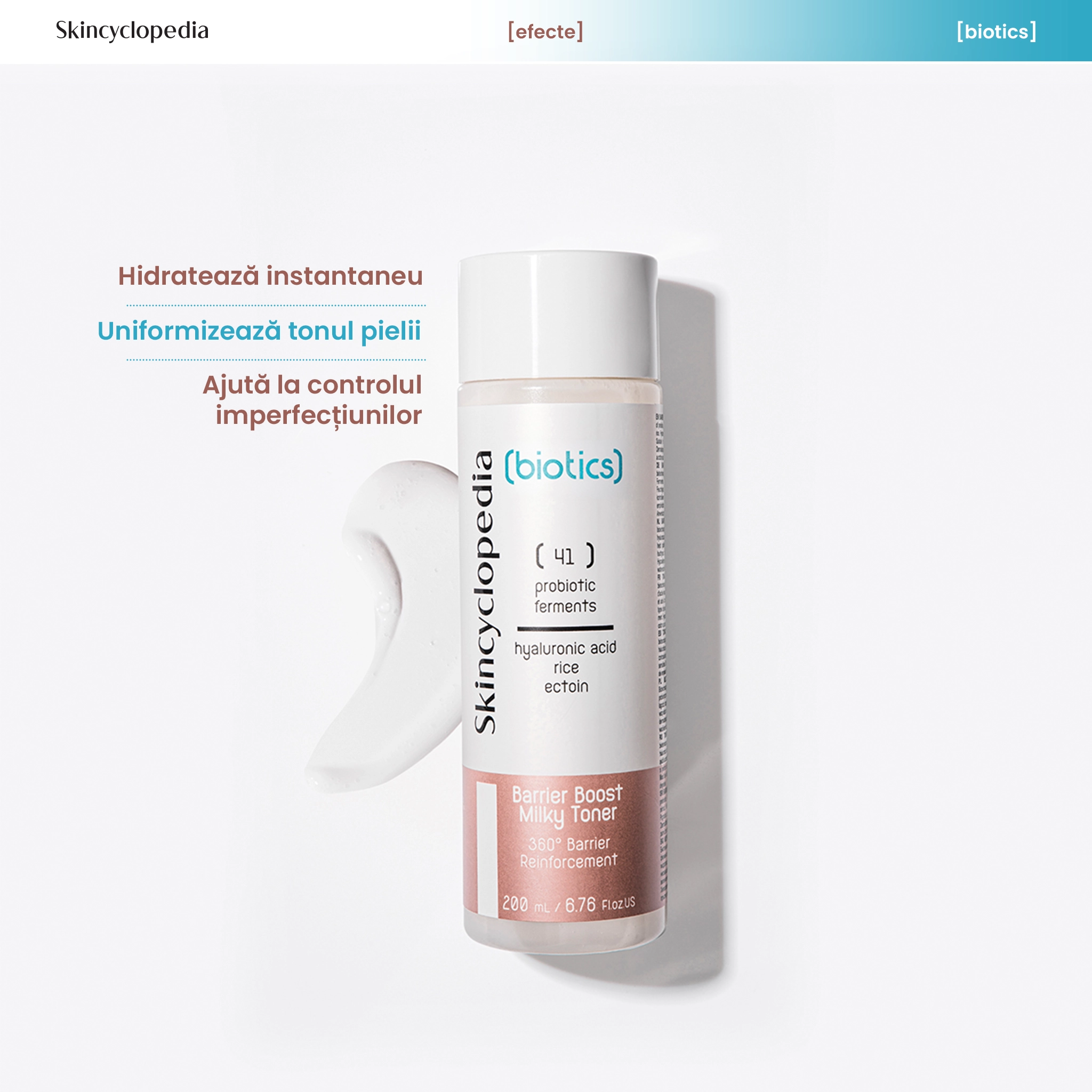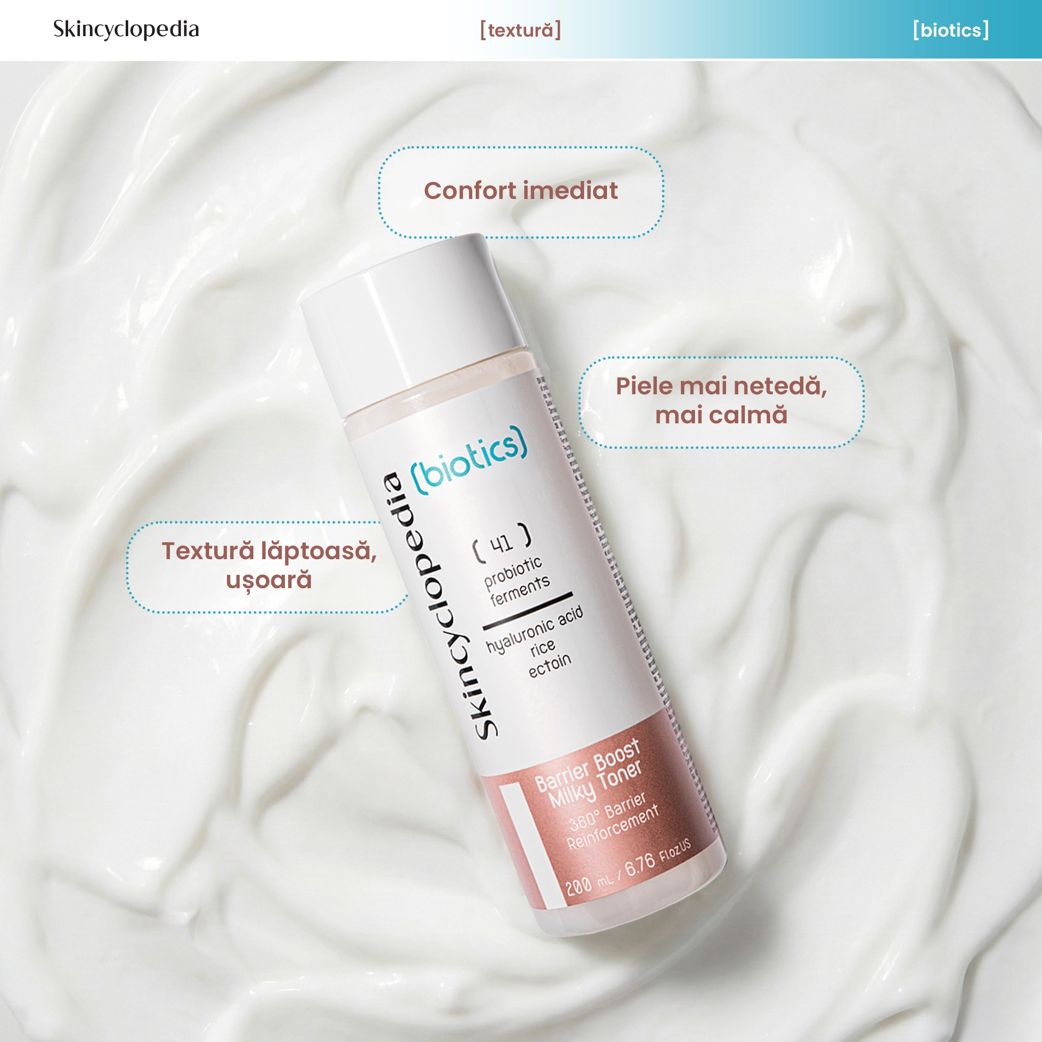 Toner laptos hidratant cu 41 de fermentați probiotici, prebiotice, acid hialuronic, orez fermentat și ectoină – formulă inovatoare pentru o piele catifelată, echilibrată și calmă. Ideal pentru toate tipurile de ten, inclusiv sensibil. Oferă hidratare de durată, protecție a microbiomului și uniformizare a tonului pielii.
