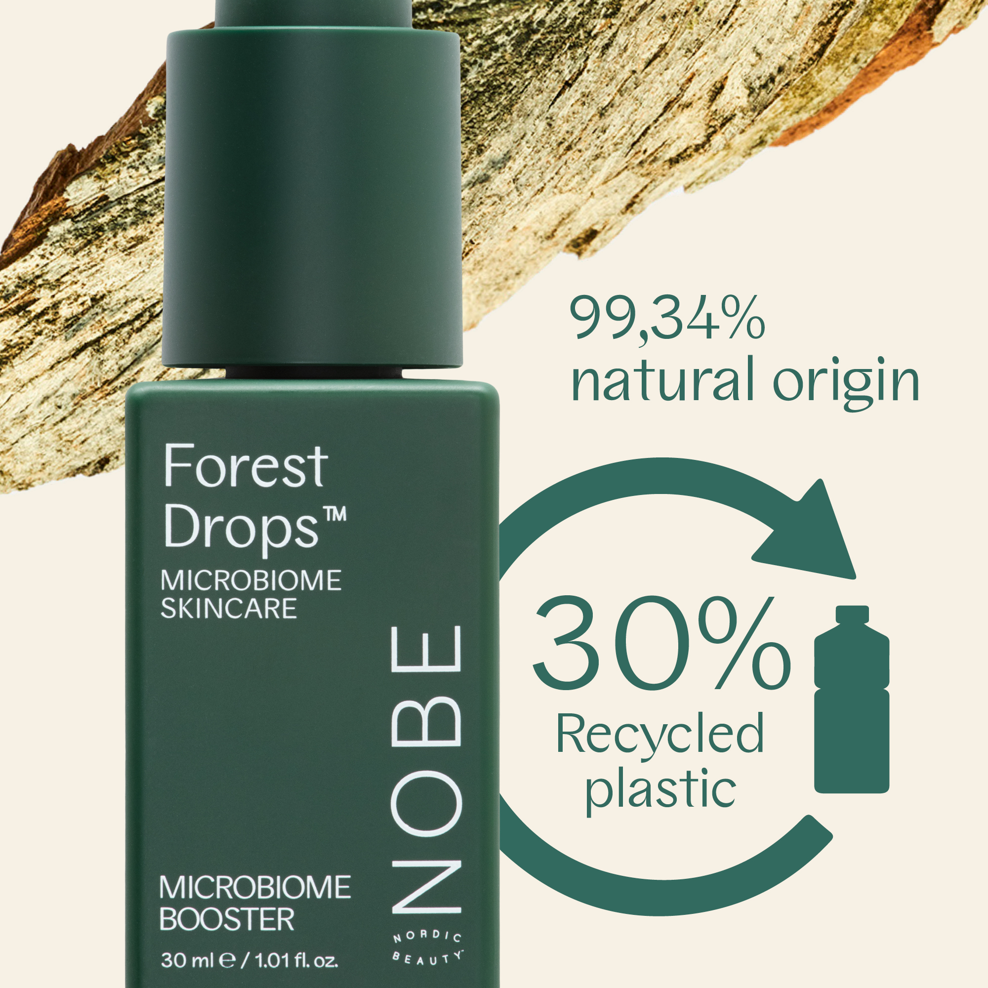 Forest Drops Microbiome Skincare Booster Microbiom este un elixir inovator pentru refacerea echilibrului natural al pielii, creat de brandul NOBE. Formula concentrată conține extract microbian forestier Re-Connecting Nature®, inspirat din biodiversitatea pădurilor finlandeze. Acest booster unic susține microbiomul cutanat, întărește bariera naturală de protecție și redă pielii luminozitatea și vitalitatea naturală. Ideal pentru toate tipurile de piele, inclusiv cea sensibilă, produsul oferă o experiență autentică de reconectare cu natura, având 99,34% ingrediente de origine naturală, certificat COSMOS Natural și aprobat de Finnish Allergy, Skin and Asthma Federation.