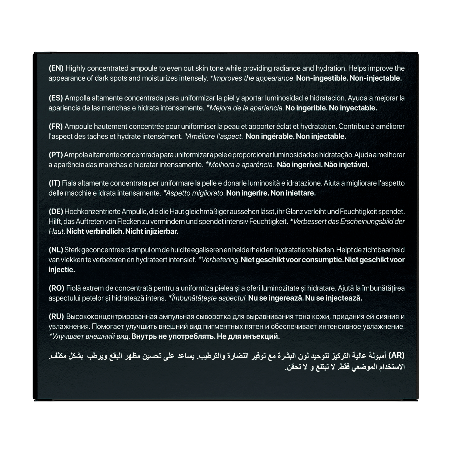 Datorită sistemului avansat DDS (Delivery System), ingredientele active pot pătrunde mai eficient în piele, contribuind la îmbunătățirea texturii pielii, la reducerea aspectului petelor pigmentare și la obținerea unui ten mai luminos, neted și revitalizat.