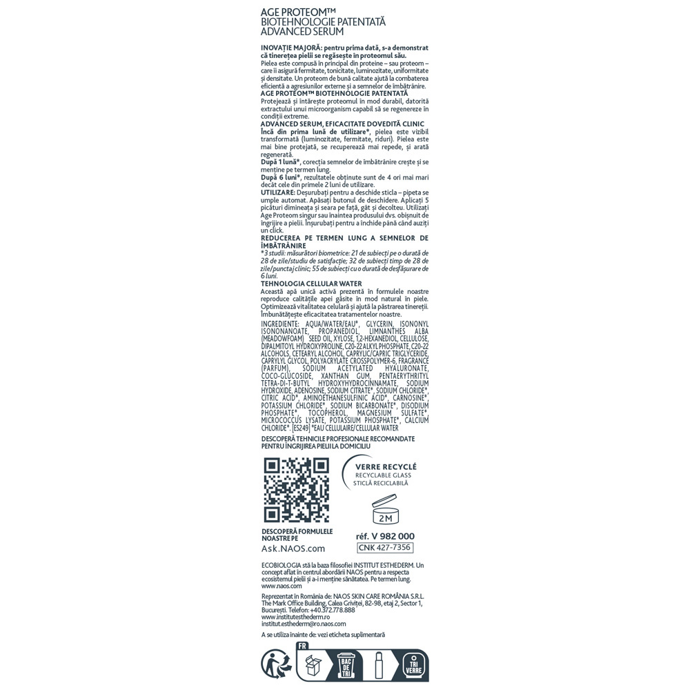 Ultima actualizare a informatiilor de prezentare pentru Ser anti imbatranire Age Proteom Advanced, 30 ml, Institut Esthederm a fost efectuata la data de 18-04-2026.  |  Raporteaza Descriere Gresita