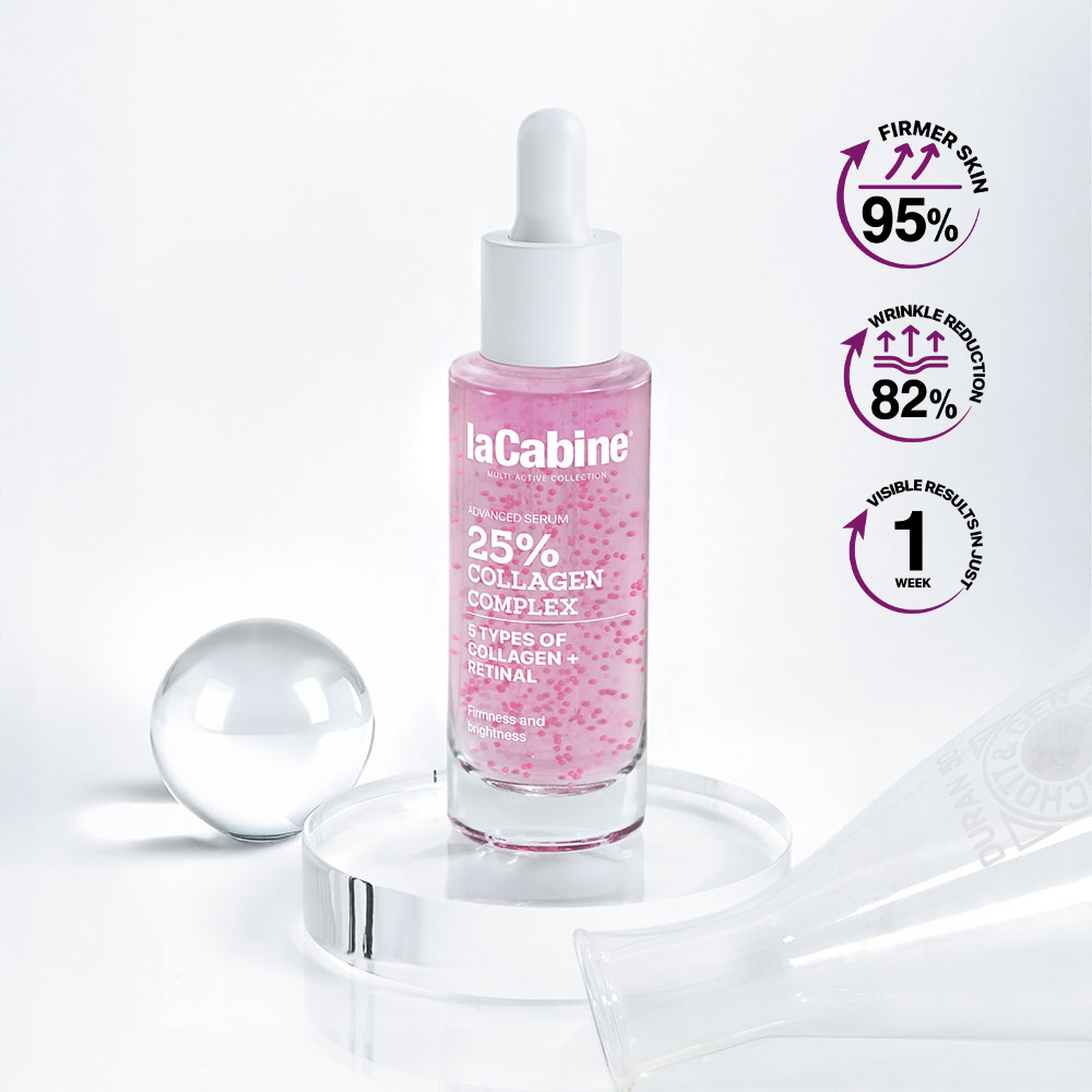 Serul de fata La Cabine Collagen Complex Multi-active este un tratament concentrat cu efect intens de fermitate si iluminare, formulat cu 25% complex de colagen si retinal. Conceput pentru a combate semnele vizibile ale imbatranirii, acesta ajuta la imbunatatirea elasticitatii si la reducerea ridurilor profunde.