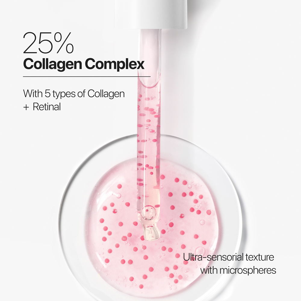 Aqua (water), butylene glycol, propanediol, glycerin, betaine, 1,2-hexanediol, diethylhexyl syringylidenemalonate, collagen amino acids, retinal, erythritol, collagen, sodium pca, pyridoxine hcl, hydrolyzed collagen, soluble collagen, niacinamide, tocopheryl acetate, pentylene glycol, sodium gluconate, mannitol, maltodextrin, parfum (fragrance), zea mays (corn) starch, hydrogenated lecithin, calcium pantothenate, sodium hydroxide, synthetic fluorphlogopite, carbomer, sodium ascorbyl phosphate, sodium starch octenylsuccinate, t-butyl alcohol, polyacrylate crosspolymer-6, hydroxyacetophenone, xanthan gum, microcrystalline cellulose, propylene glycol, citric acid, sodium benzoate, sorbic acid, benzoic acid, caprylic/capric triglyceride, ci 42090 (fd&c blue no.1), ci 17200 (d&c red no.33), peg-40 hydrogenated castor oil, trideceth-9, nicotiana benthamiana hexapeptide-40 sh-polypeptide-47, acetyl cedrene, dimethyl phenethyl acetate, hexamethylindanopyran, tetramethyl acetyloctahydronaphthalenes, carrageenan, ci 73360 (d&c red no. 30)