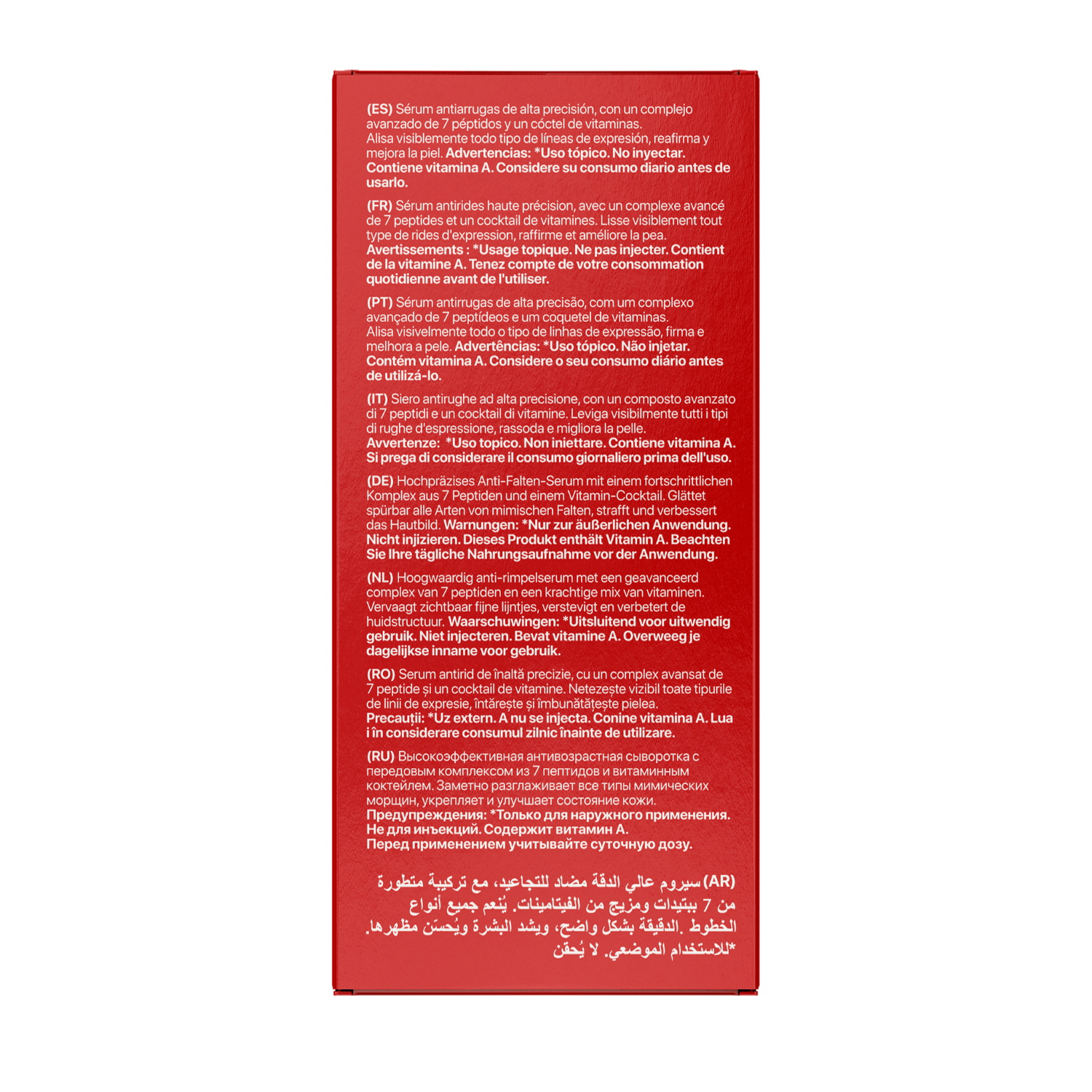 Textura ușoară și rapid absorbabilă permite utilizarea zilnică, iar combinația de peptide și vitamine ajută la îmbunătățirea aspectului liniilor de expresie, oferind pielii hidratare, luminozitate și un aspect mai ferm și revitalizat.