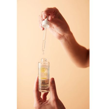 Cu 92% ingrediente de origine naturală (conform ISO 16128), acest ser vegan, cruelty-free, combină vitamina C stabilizată (3-O-Ethyl Ascorbic Acid) cu cofeină și peptide biomimetice, pentru a îmbunătăți tonusul pielii, a uniformiza nuanța și a reduce vizibil semnele de oboseală.
