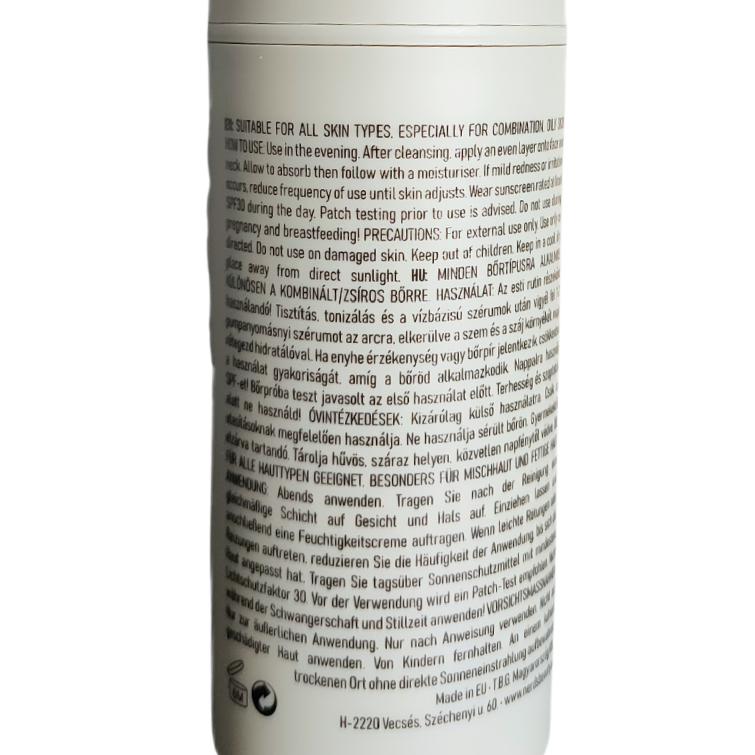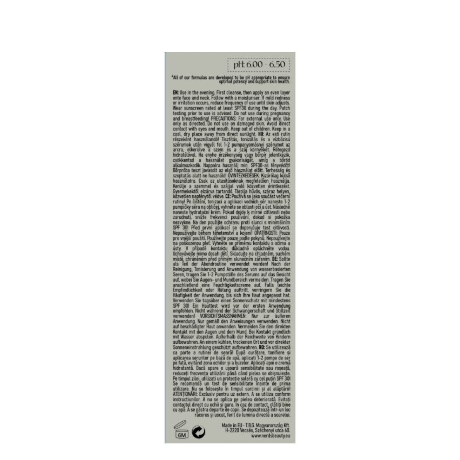 Cu o textură lejeră, de tip loțiune, serul se absoarbe rapid și susține regenerarea celulară, contribuind la o piele mai fermă, mai netedă și uniformă.