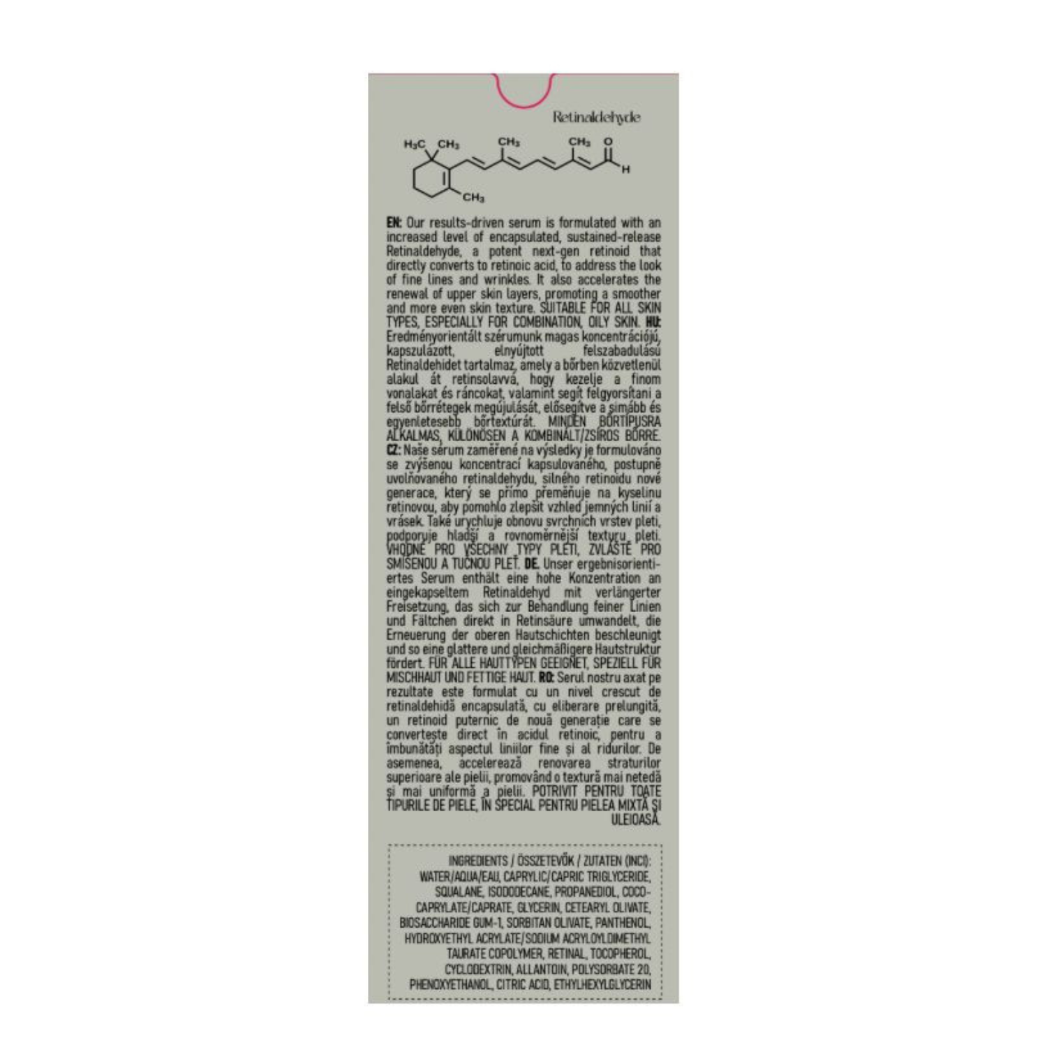 Retinoid avansat cu eliberare controlată, stimulează regenerarea pielii, producÈ›ia de colagen È™i reduce semnele de îmbătrânire, oferind rezultate rapide cu risc redus de iritaÈ›ii.