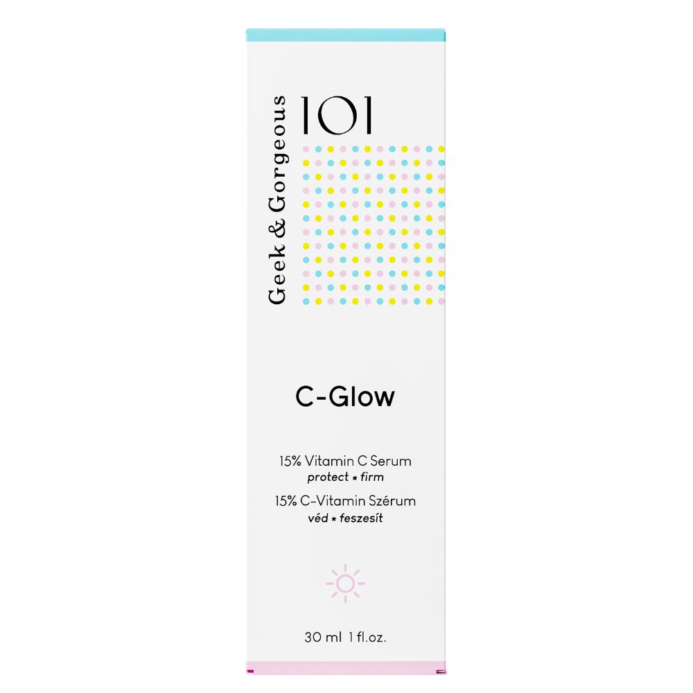 C-Glow este serul cu conținut de 15% acid ascorbic (Vitamina C Pură) + extra antioxidanți Acid Ferulic și Vitamina E.