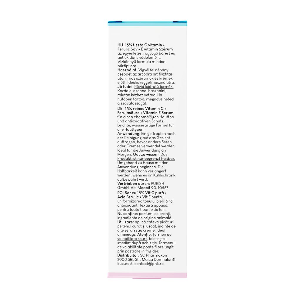 Vitamina C Pura (acidul ascorbic) este puternic antioxidant, ofera pielii protectie impotriva factorilor de poluare externi, stimuleaza propria productie de colagen a tenului și estompeaza hiperpigmentarea