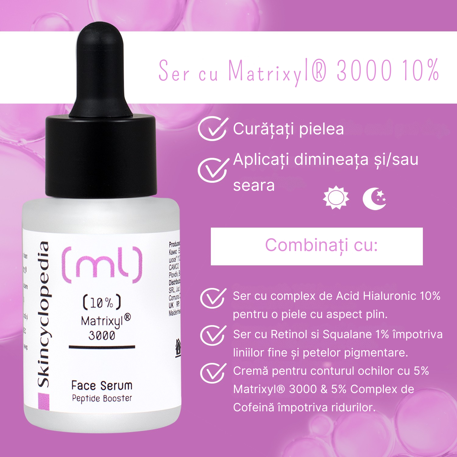 Skincyclopedia Ser față cu 10% Matrixyl® 3000 este un tratament facial anti-îmbătrânire, formulat cu peptide biomimetice ce acționează sinergic pentru a reduce ridurile profunde, a reda fermitatea și a uniformiza tonul pielii. Recomandat pentru toate tipurile de ten, inclusiv sensibil, acest ser oferă rezultate vizibile de întinerire și revitalizare după doar câteva săptămâni de utilizare constantă.
