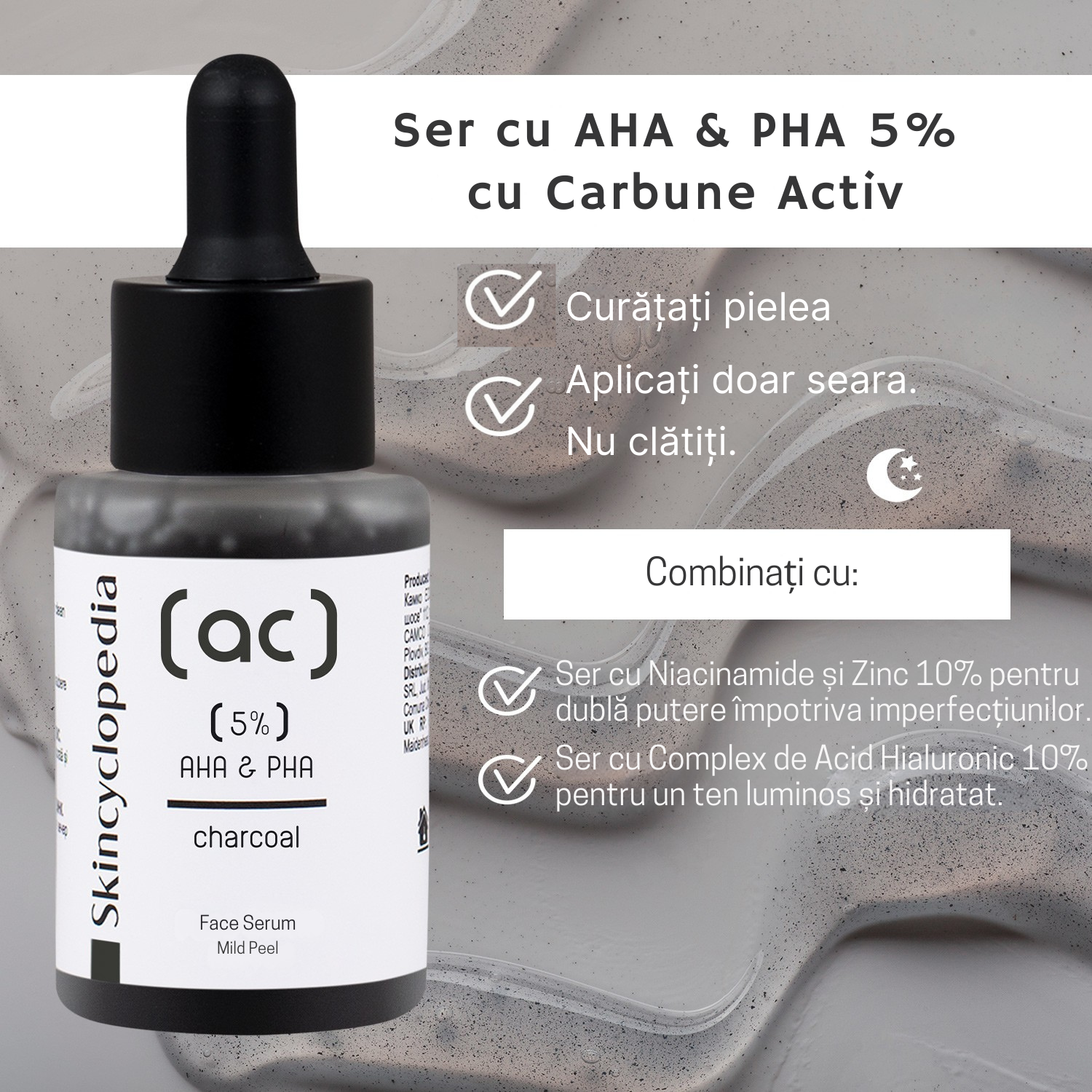 Exfoliere delicată cu 5% AHA + PHA și cărbune activ, pentru un ten mai neted, purificat și uniform. Potrivit tenului mixt, gras sau sensibil, predispus la pori încărcați și imperfecțiuni.