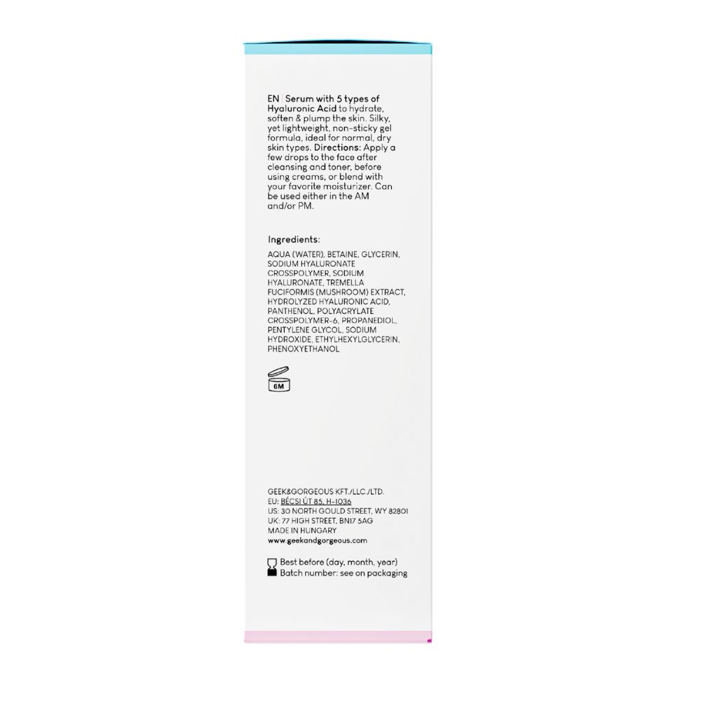 Water, Betaine, Glycerin, Sodium Hyaluronate Crosspolymer, Sodium Hyaluronate, Tremella Fuciformis (Mushroom) Extract, Hydrolyzed Hyaluronic Acid, Panthenol, Polyacrylate Crosspolymer-6, Propanediol, Pentylene Glycol, Sodium Hydroxide, Ethylhexylglycerin, Phenoxyethanol.