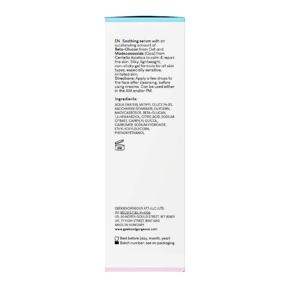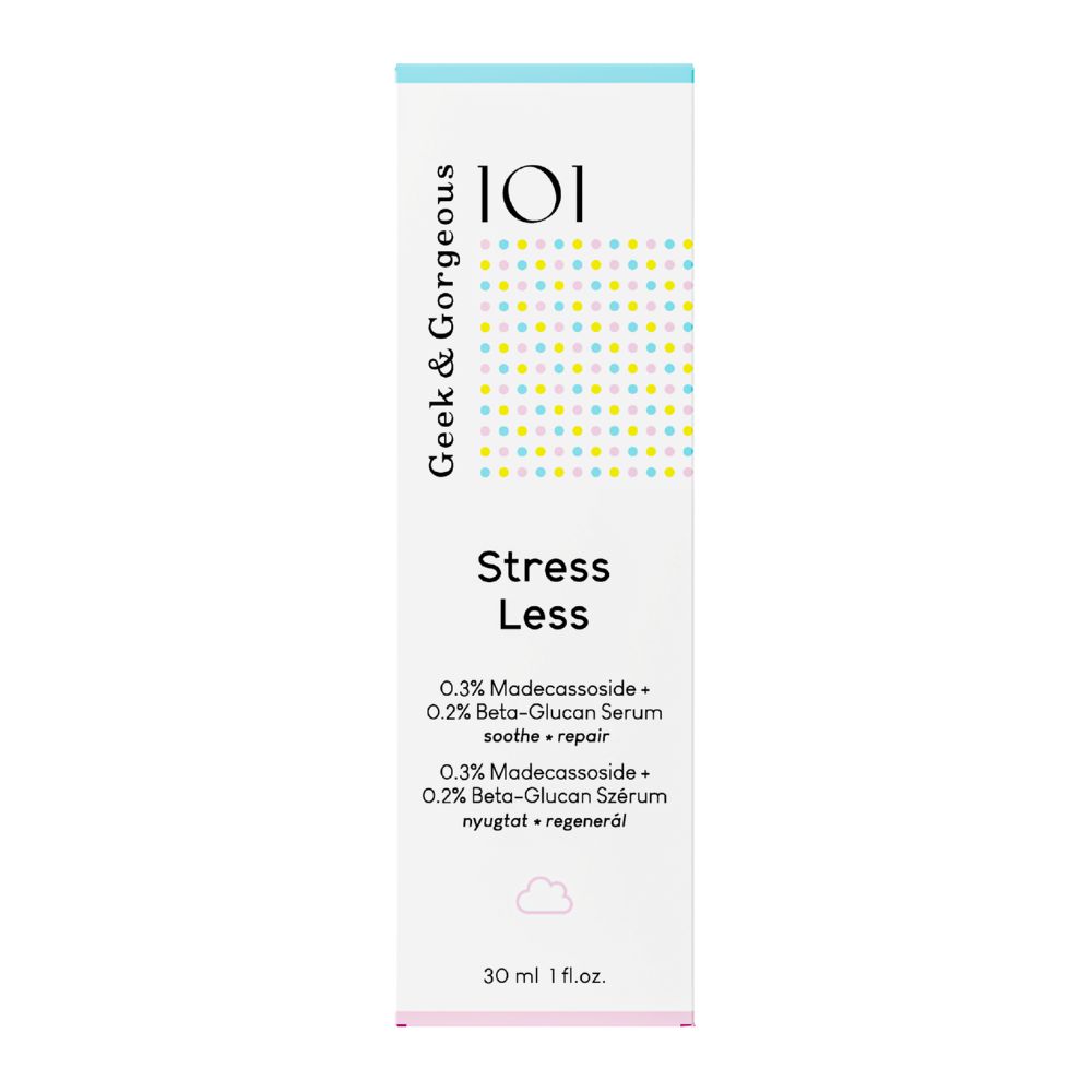 Stress Less, ser cu concentrație mare de Beta-Glucan- extras din ovăz si Madecassoside- extras din Centella Asiatică, două super molecule cu abilități remarcabile de calmare, reparare și hidratare a pielii.