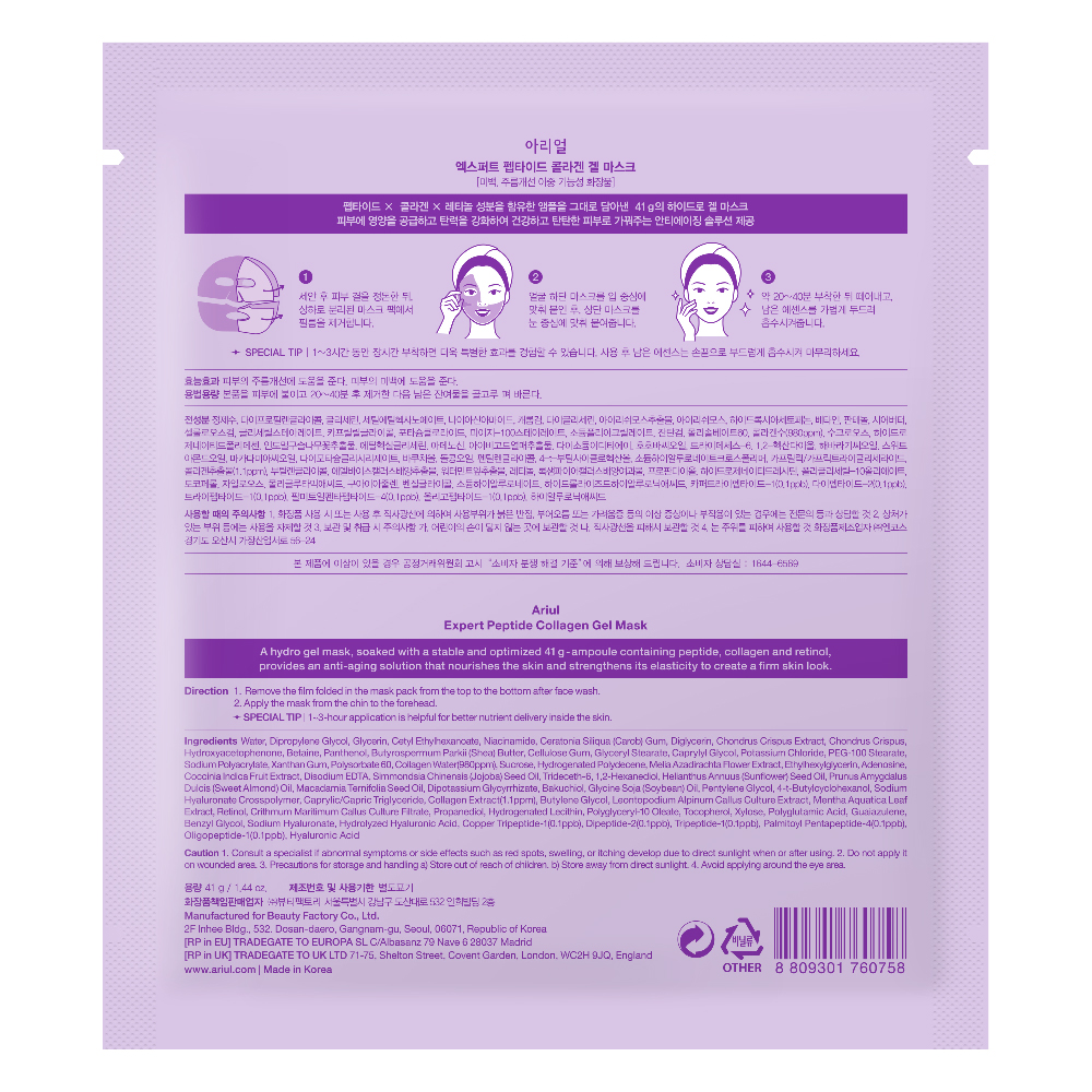 Ariul Expert Peptide Collagen Gel Mask este o mască hidrogel inovatoare, concepută pentru a oferi hidratare intensă și pentru a îmbunătăți aspectul pielii afectate de semnele îmbătrânirii. Formula sa avansată ajută la redarea fermității și elasticității pielii, oferind un aspect mai neted și mai uniform.