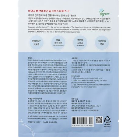 Manyo Panthetoin Mask este o mască tip șervețel cu efect hidratant și calmant, creată special pentru pielea uscată și foarte uscată. Formula sa avansată combină Panthenolul și Ectoinul într-un complex inovator (Panthetoin), ce contribuie la regenerarea și protecția celulară, redând pielii confortul și vitalitatea. Tehnologia U-Oliosome fragmentează ingredientele active în nanoparticule pentru o absorție profundă și eficientă, oferind hidratare intensă și de lungă durată, fără senzație grasă sau lipicioasă.