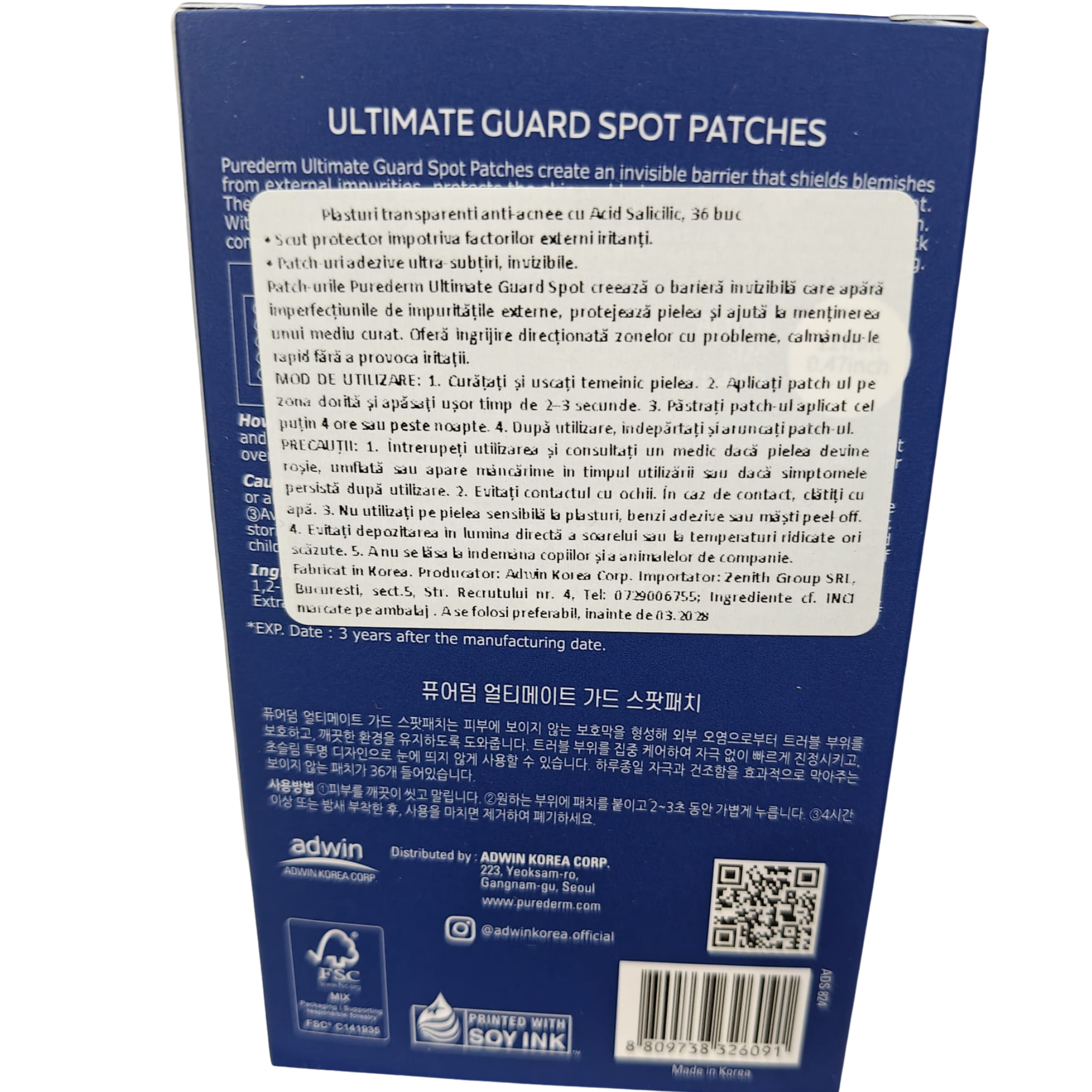 Purederm Ultimate Guard sunt plasturi transparenti anti-acnee, conceputi pentru a proteja si trata eficient imperfectiunile. Formula lor creeaza o bariera invizibila impotriva factorilor externi, mentinand zona afectata curata si protejata. Datorita designului ultra-subtire, plasturii sunt aproape imperceptibili pe piele si pot fi purtati pe parcursul zilei sau peste noapte. Acestia contribuie la reducerea rapida a aspectului cosurilor, prevenind in acelasi timp agravarea sau iritarea pielii.