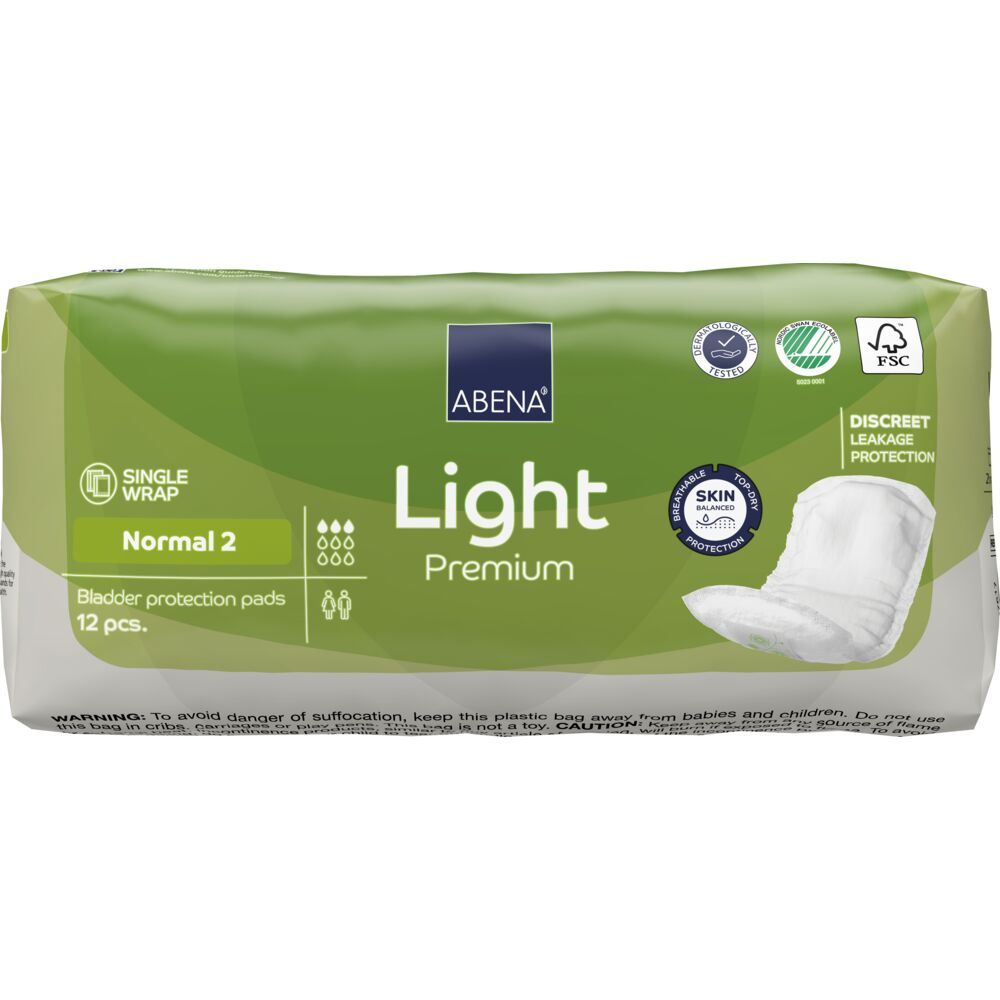ABENA Light este gama Premium de absorbante anatomice pentru incontinență, de la forma ușoară, până la cea moderată. Prevăzute cu bandă adezivă și material 100% Breathable, au interiorul de foarte bună calitate, fabricat cu tehnologia Top-Dry, aspect ce garantează o absorbție rapidă și menținerea unei suprafețe uscate, chiar și după mai multe micțiuni.