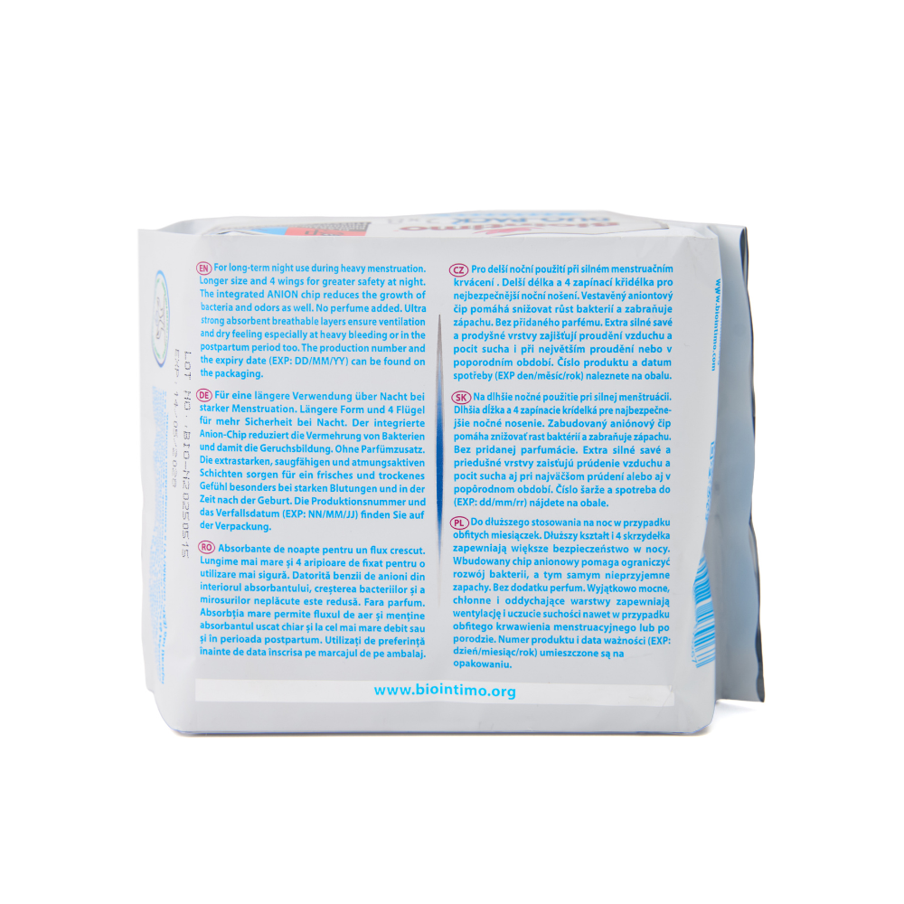 Absorbantele de noapte Biointimo sunt special concepute pentru protecție maximă în timpul somnului, chiar și în cazul unui flux menstrual abundent sau al episoadelor de incontinență ușoară. Realizate din materiale naturale, oferă siguranță, confort și prospețime pe toată durata nopții.