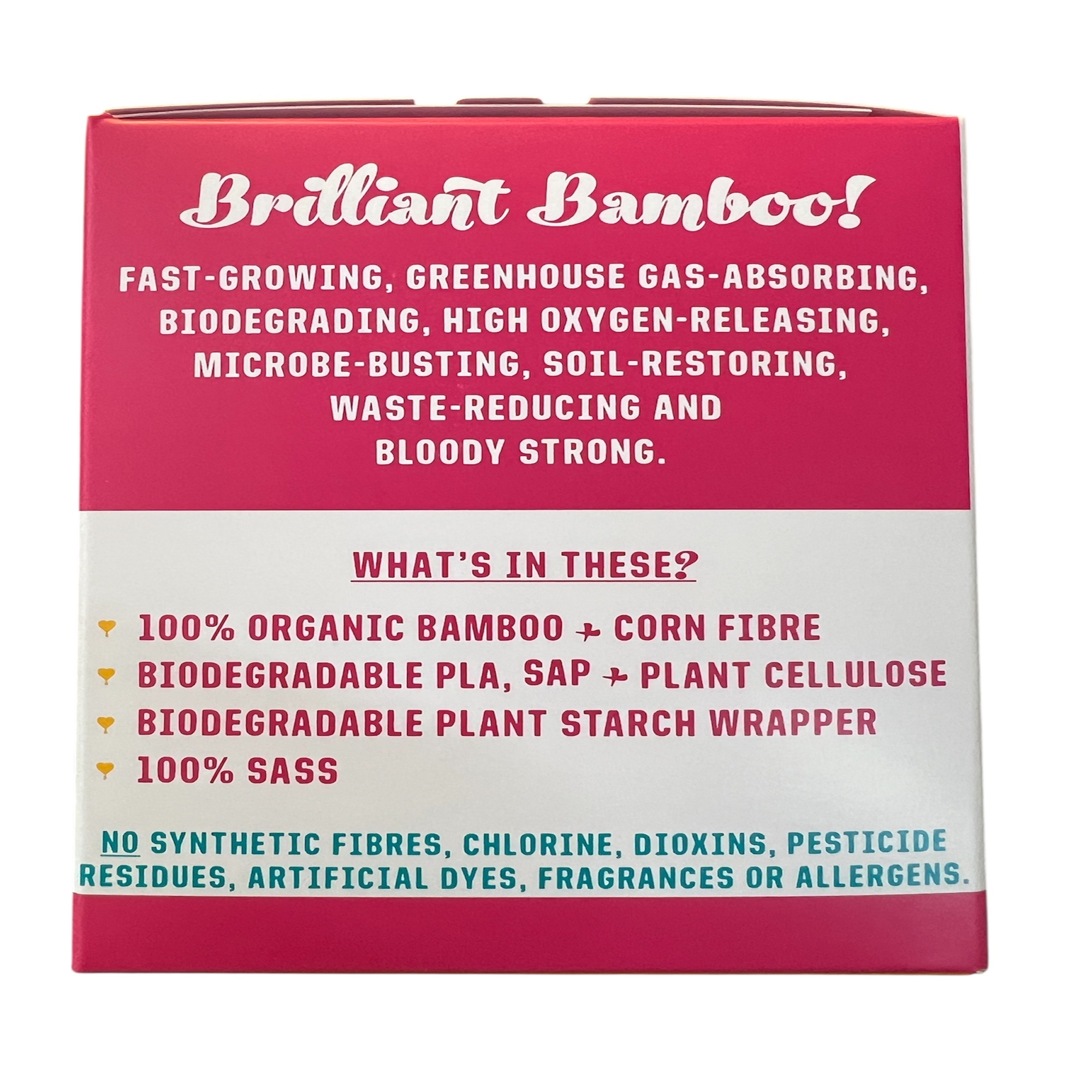 Flo Bamboo Day Pads sunt absorbante ultra-subțiri, cu aripioare, special concepute pentru un flux menstrual normal. Realizate din bambus organic provenit din surse sustenabile, oferă protecție sigură, confort și respirabilitate pe durata întregii zile.