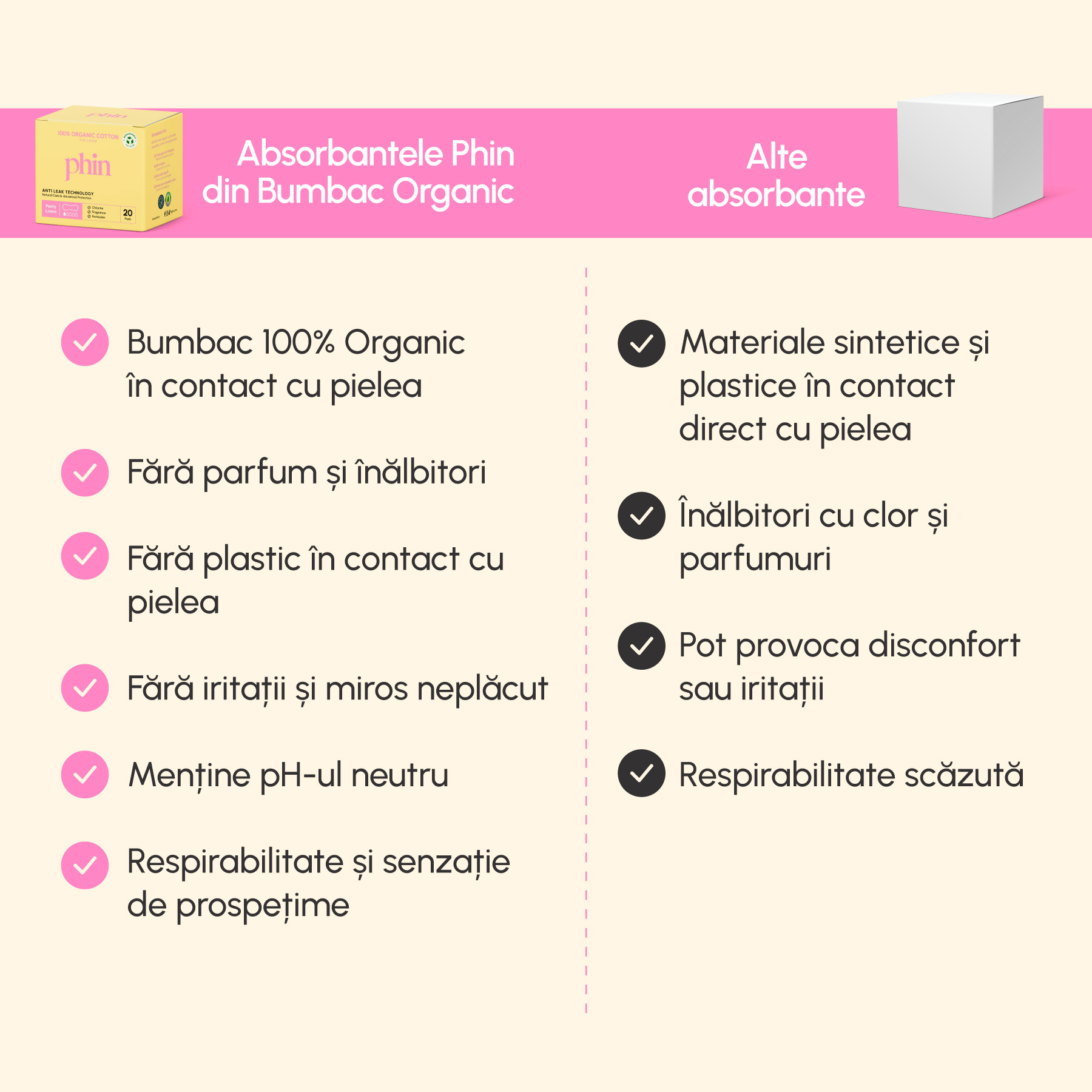 Ultima actualizare a informatiilor de prezentare pentru Absorbante zilnice bumbac organic, 20 bucati, Phin a fost efectuata la data de 16-04-2026.  |  Raporteaza Descriere Gresita