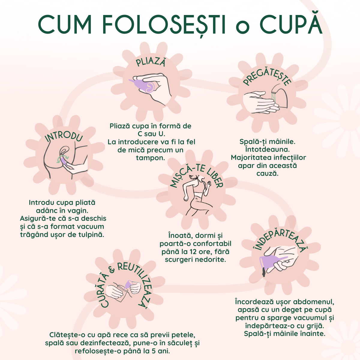 - Fierbe cupa 3–5 minute la finalul fiecarui ciclu menstrual.