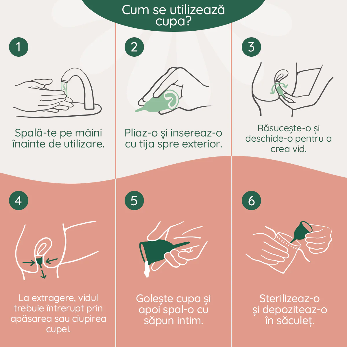 - Spală-ți mâinile înainte de a atinge cupa menstruală.