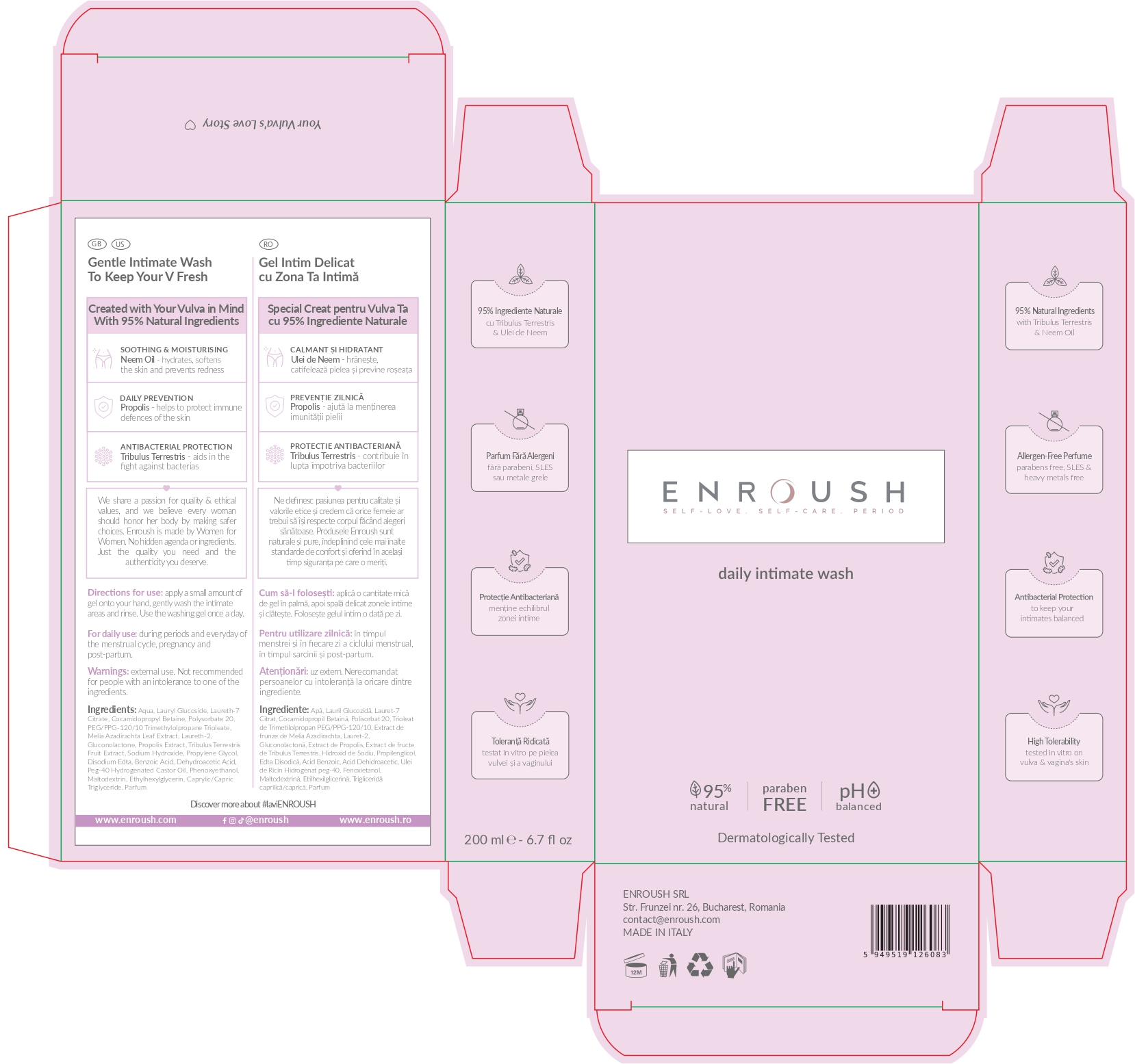 Enroush Gel Intim 95% Natural Antibacterial Gel Intim Natural din 95% ingrediente naturale cu pH neutru.