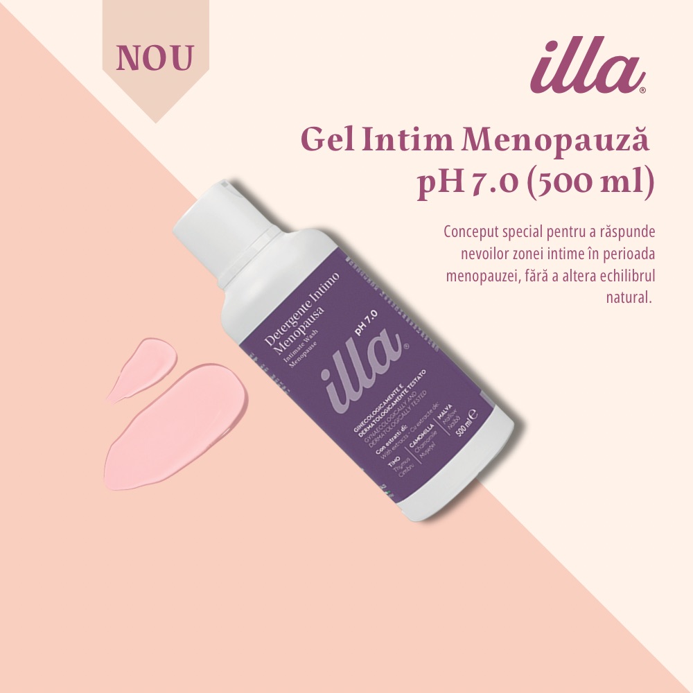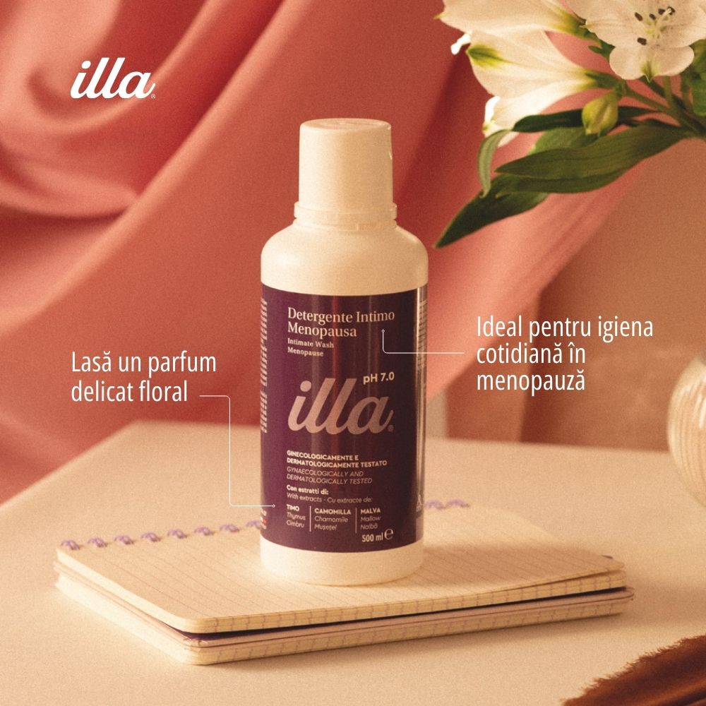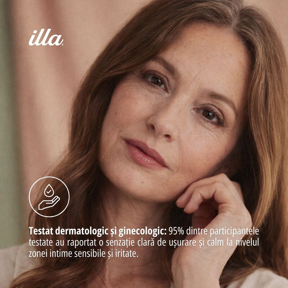 Gelul intim Illa Menopauză este un detergent delicat, special formulat pentru a răspunde nevoilor specifice ale zonei intime în perioada menopauzei. Acest gel este alegerea potrivită pentru a combate senzaÈ›ia de uscăciune È™i disconfort, asigurând o igienă corectă È™i blândă în armonie cu schimbările hormonale specifice menopauzei. Cu un pH neutru de 7.0, acesta respectă echilibrul fiziologic fragil al acestei etape, oferind o curățare sigură È™i o senzaÈ›ie de prospeÈ›ime de durată.