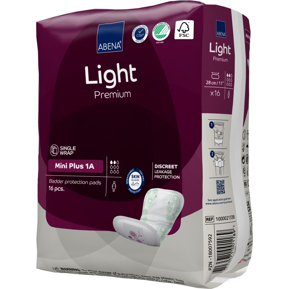 ABENA Light este gama Premium de absorbante anatomice pentru incontinență, de la forma ușoară, până la cea moderată. Prevăzute cu bandă adezivă și material 100% Breathable, au interiorul de foarte bună calitate, fabricat cu tehnologia Top-Dry, aspect ce garantează o absorbție rapidă și menținerea unei suprafețe uscate, chiar și după mai multe micțiuni.
