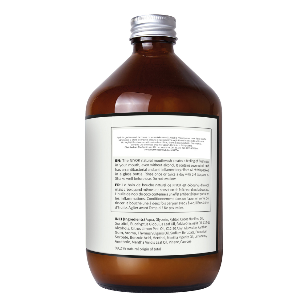 Niyok Apă de gură vegană cu ulei de cocos organic și mentă este o soluție delicată și eficientă pentru igiena orală zilnică, creată special pentru persoanele care își doresc o alternativă naturală la apele de gură convenționale. Formula sa pe bază de ingrediente 100% naturale curăță cavitatea bucală fără a irita mucoasa orală, fiind ideală pentru gingii sensibile.