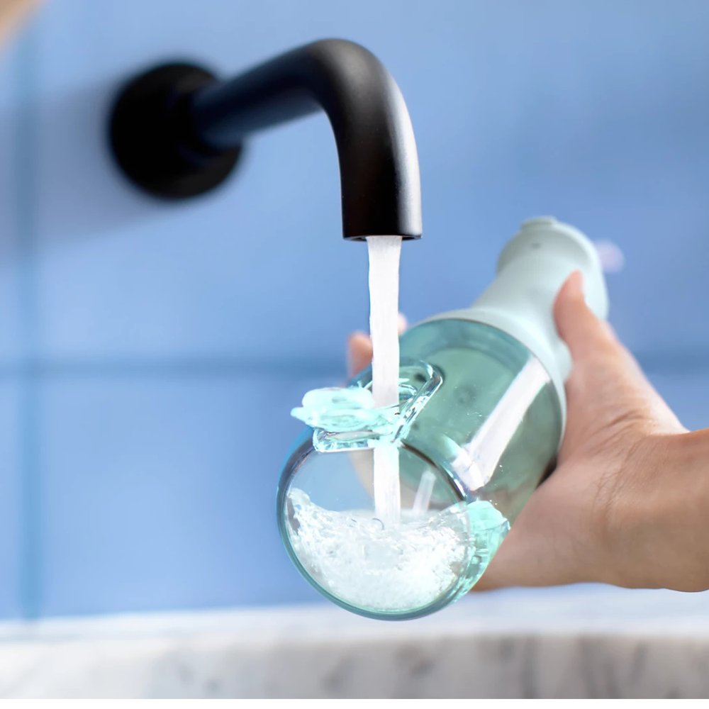 - Umple rezervorul de 250 ml cu apă curată sau apă de gură fără alcool.