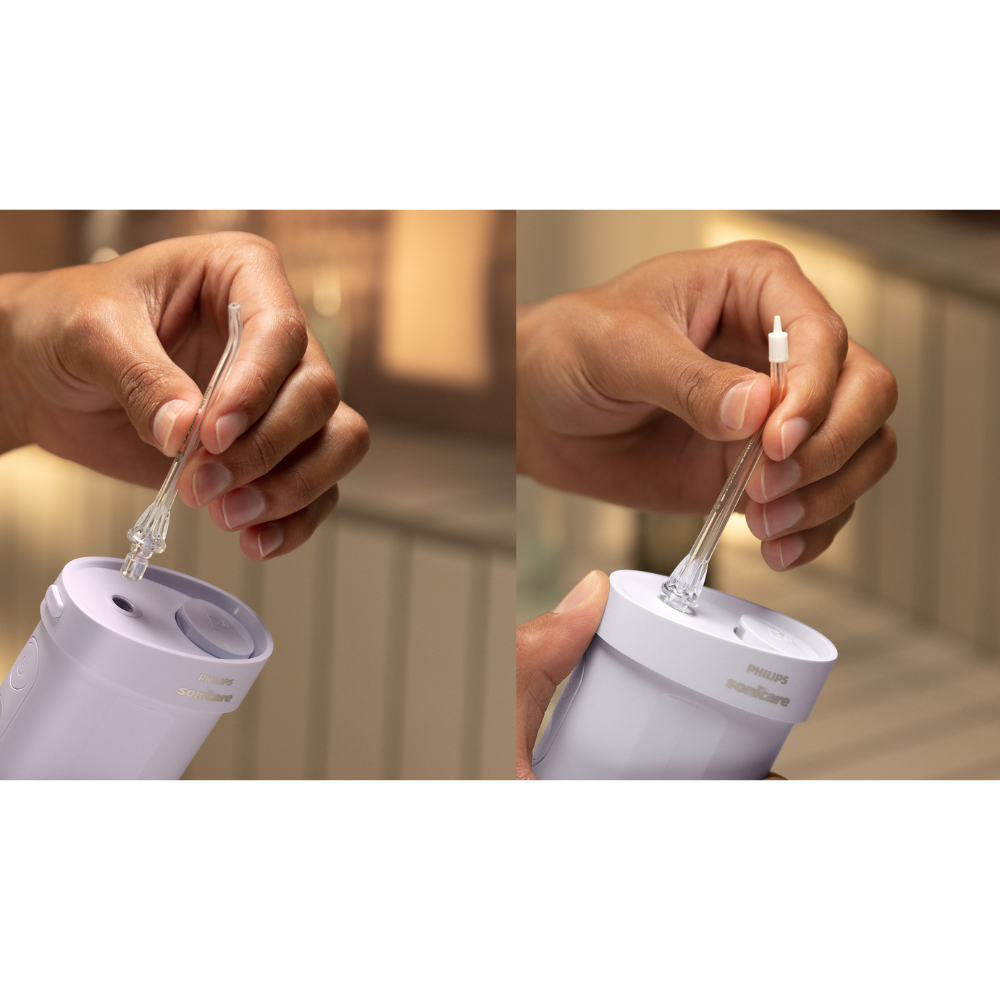 Descoperă Philips Sonicare Compact Flosser 1000, dușul bucal portabil care oferă o curățare interdentară completă în doar 60 de secunde. Cu un design compact și rezervor pliabil de 200 ml, acest dispozitiv este ideal pentru acasă sau în călătorii. Îndepărtează până la 99,9% din placa bacteriană dintre dinți și de-a lungul liniei gingivale, contribuind la o igienă orală superioară și la gingii mai sănătoase. Datorită celor trei moduri de curățare (Clean, Sensitive, Puls) și capetelor interschimbabile, Philips Sonicare Compact Flosser asigură o experiență personalizată, delicată și eficientă, adaptată nevoilor fiecărui utilizator.