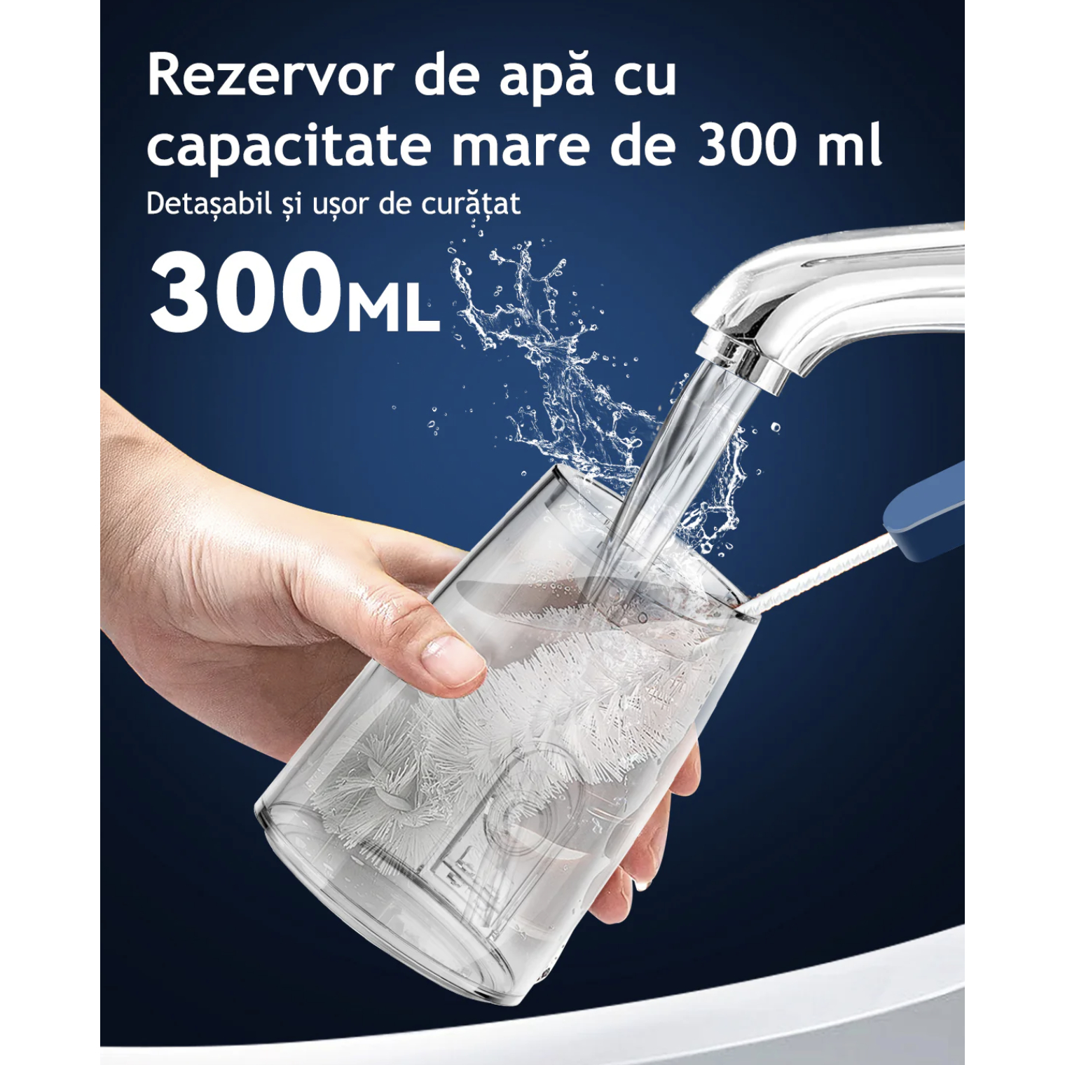 - Tehnologie cu jet de apă de înaltă presiune – ajută la îndepărtarea resturilor alimentare din spațiile interdentare și de-a lungul liniei gingivale.