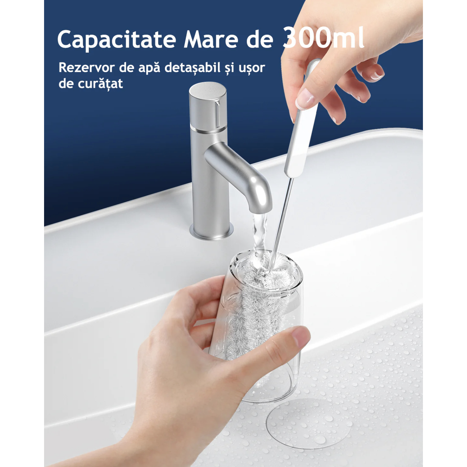 - Lampă UV integrată – permite sterilizarea capetelor între utilizări, menținând igiena optimă.