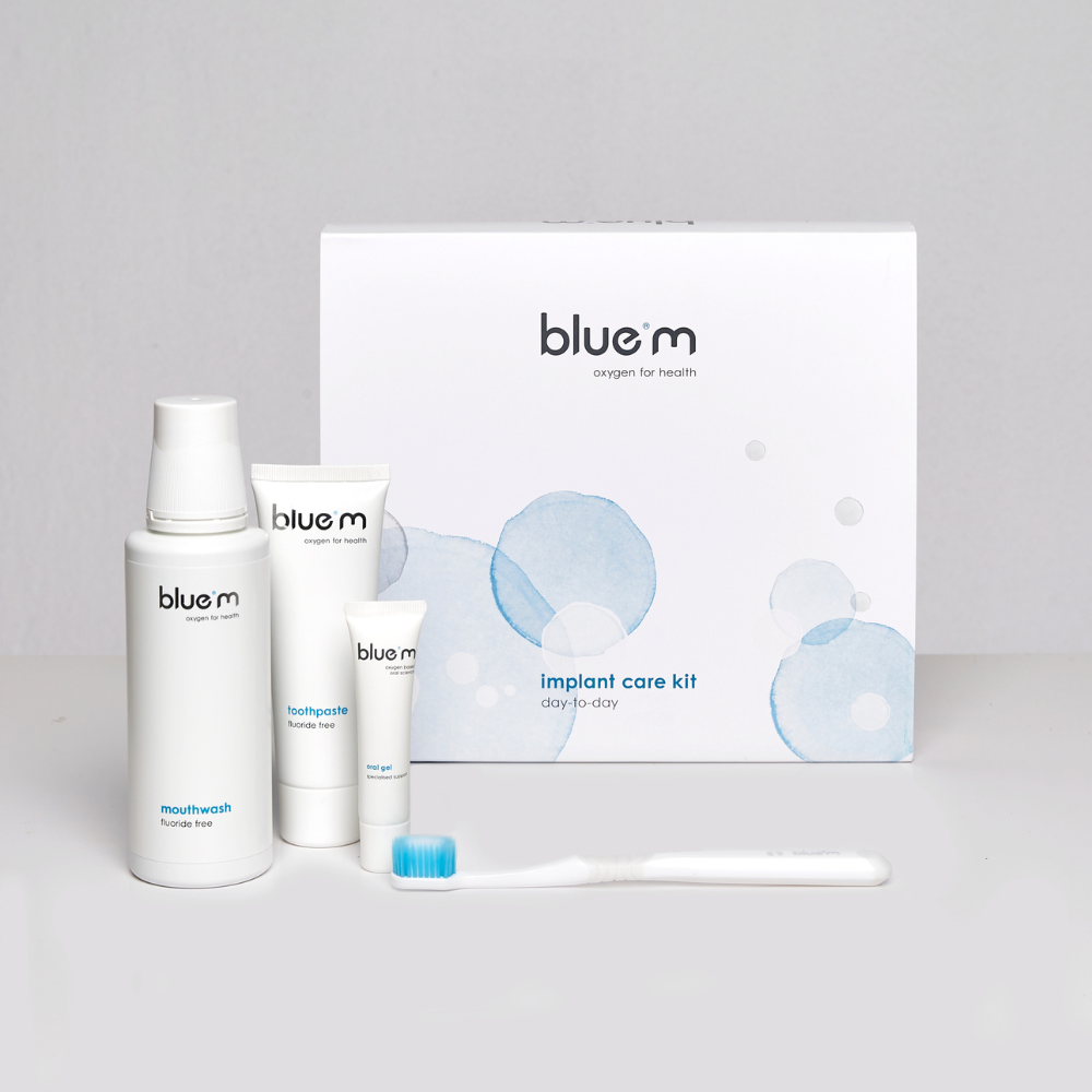 Kitul pentru ingrijirea zilnica a cavitatii orale bluem Daily Oral Care Kit este alegerea ideala pentru persoanele cu dinti sensibili, gingii vulnerabile sau implanturi dentare. Formula avansata pe baza de oxigen activ ajuta la mentinerea unui mediu oral echilibrat, contribuie la sanatatea gingiilor si sustine protejarea tesuturilor din jurul implanturilor. Setul include produse complementare care curata eficient, improspateaza respiratia si sustin sanatatea orala pe termen lung, fiind usor de folosit in rutina zilnica.