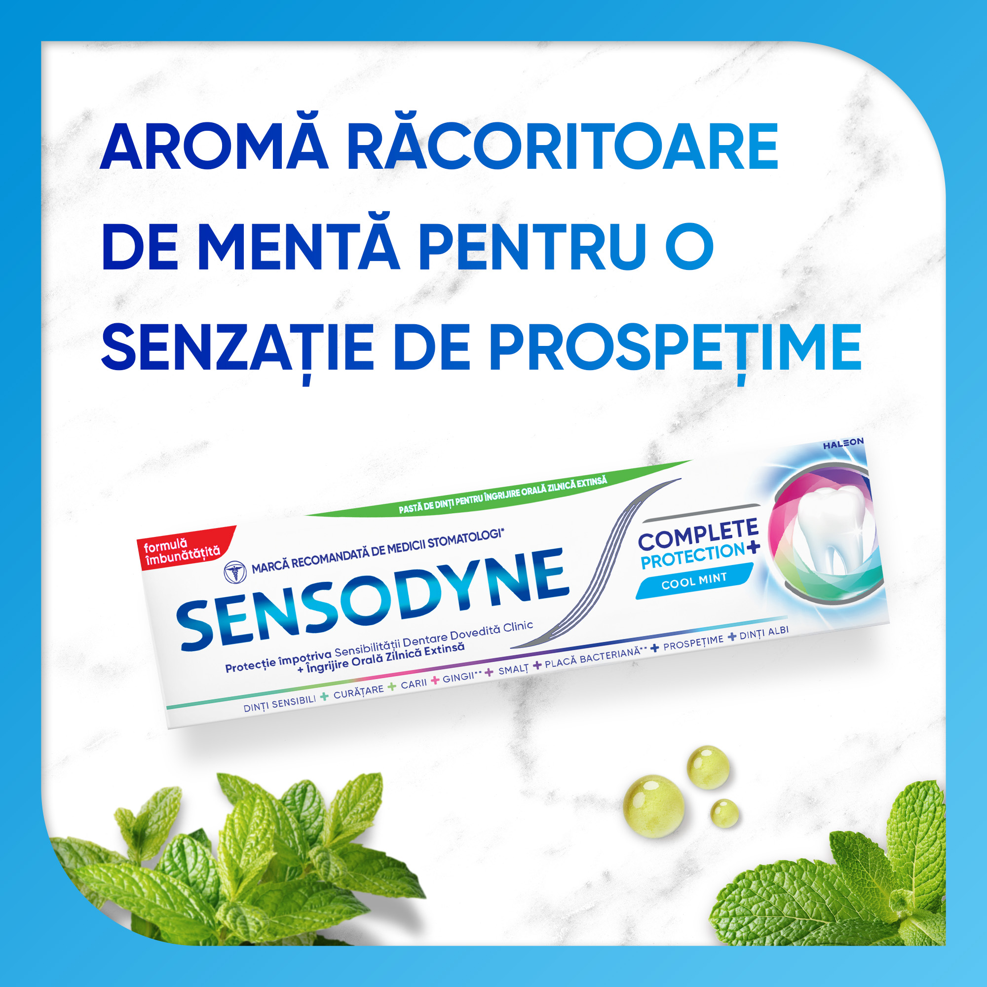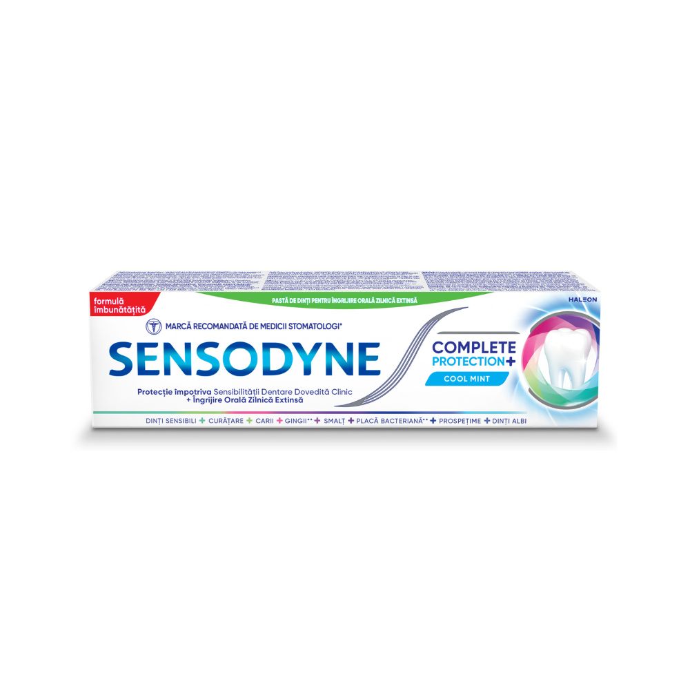Sensodyne Complete Protection + este o pasta de dinti pentru utilizare zilnica ce ofera o serie de beneficii pe langa protectia dintilor sensibili.