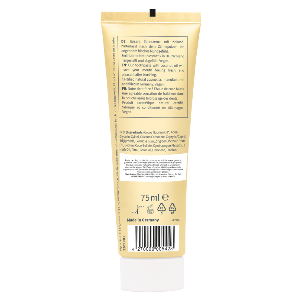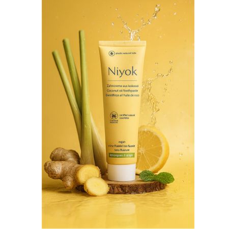 Pasta de dinți Niyok cu ulei de cocos organic, lemongrass și ghimbir oferă o curățare naturală și eficientă, completată de o senzație tonică și revigorantă. Formula este concepută pentru utilizare zilnică și susține sănătatea cavității bucale, fără a agresa smalțul sau gingiile.