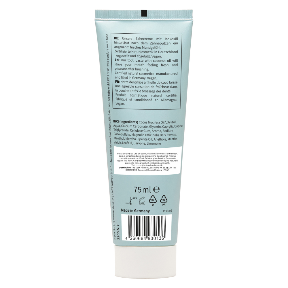 Pasta de dinți Niyok cu ulei de cocos organic și mentă Ice Mint oferă o curățare eficientă și blândă, susținând sănătatea zilnică a cavității bucale. Formula sa naturală este bazată pe ulei de cocos bio, recunoscut pentru conținutul de acid lauric, cu proprietăți antibacteriene și antiinflamatoare, care ajută la menținerea gingiilor sănătoase și a echilibrului oral.