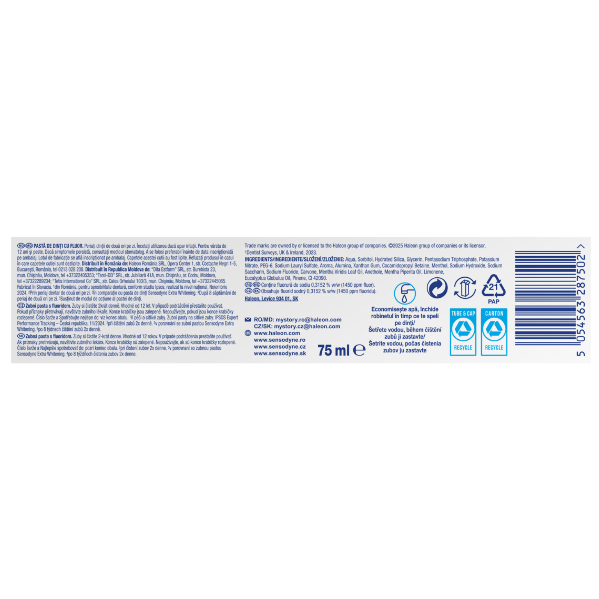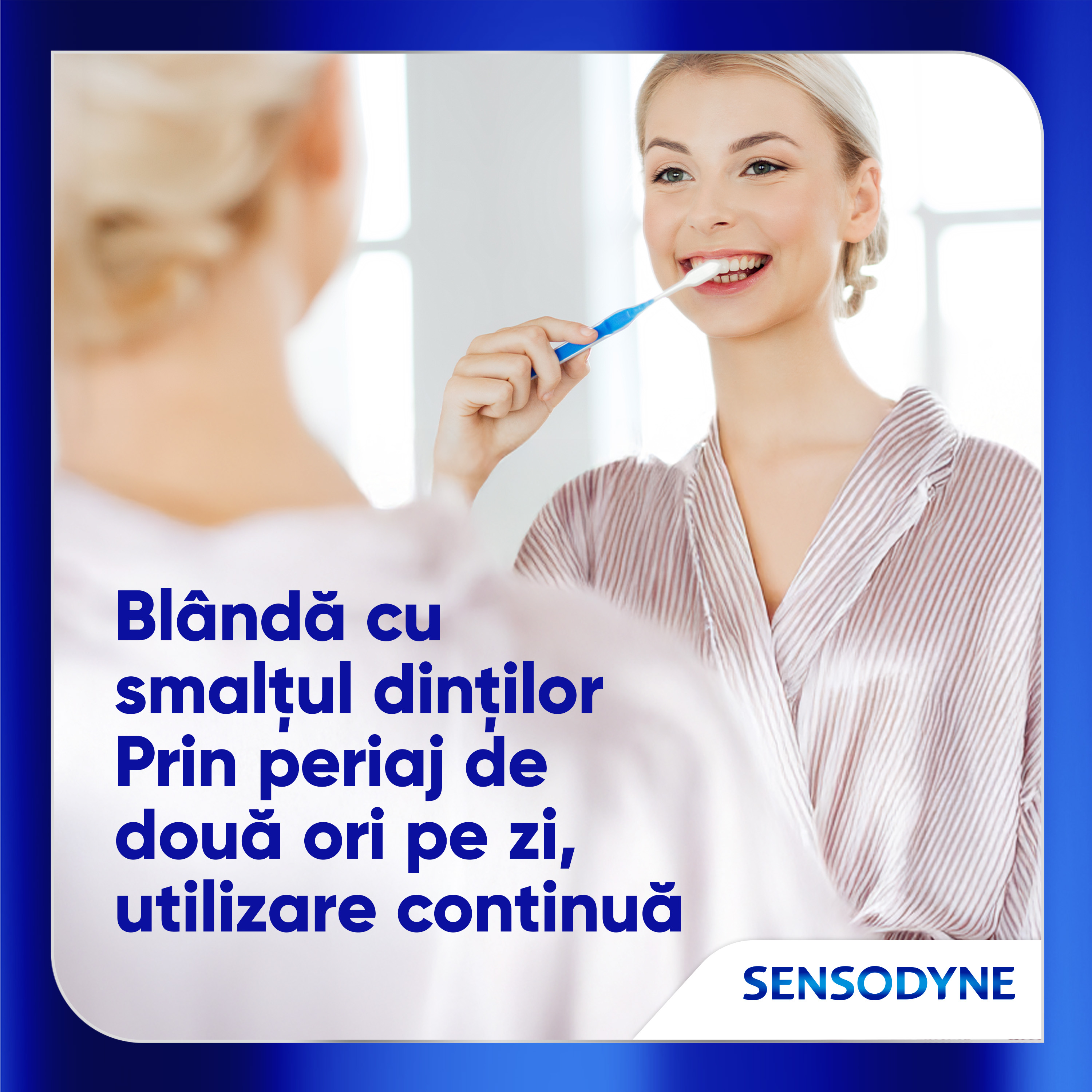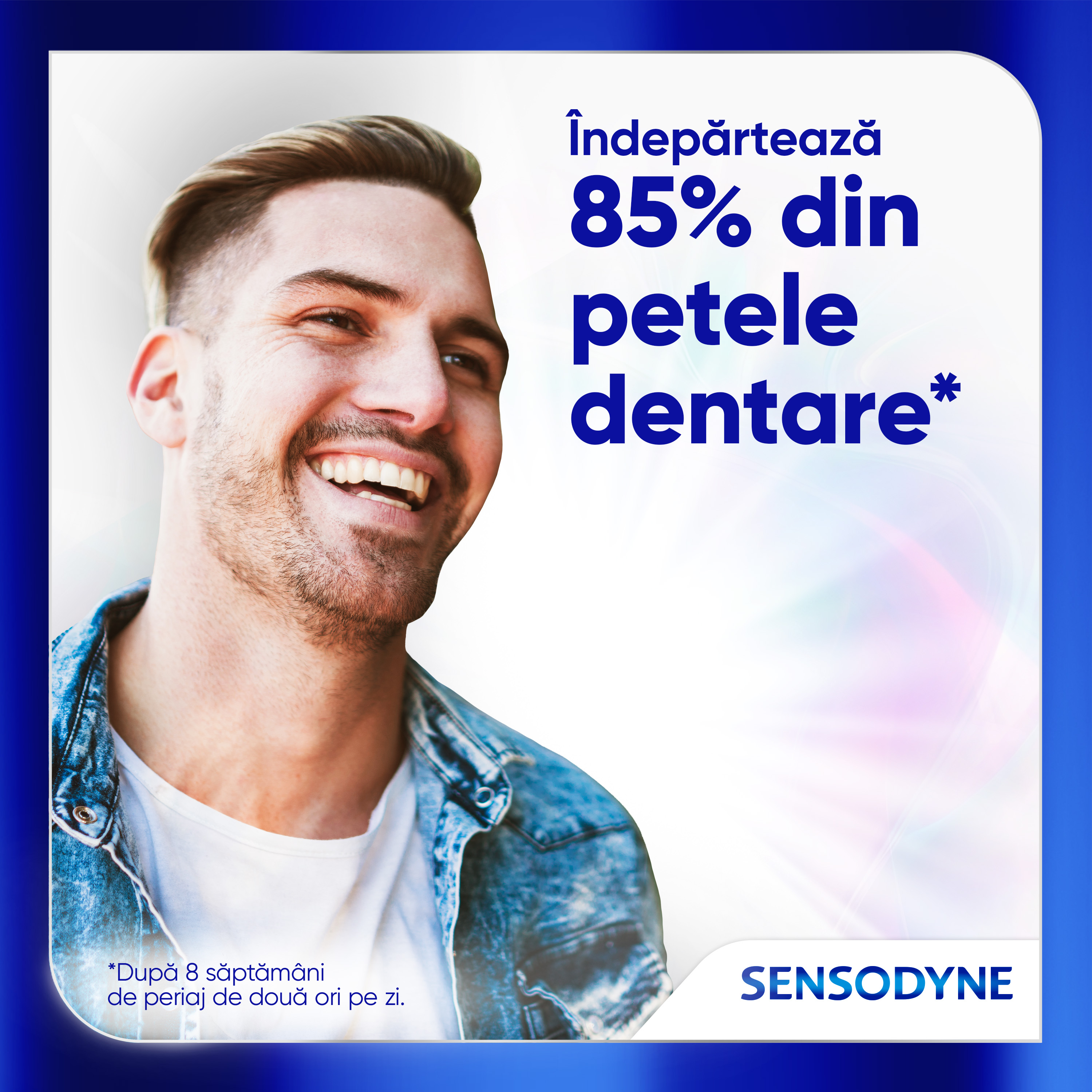 Sensodyne Advanced White Enamel Defence este o pasta de dinti special formulata pentru dintii sensibili, care ofera protectie impotriva sensibilitatii si actiune eficienta de albire. Formula cu fluor si abrazivitate scazuta ajuta la indepartarea petelor si protejarea smaltului, pentru dinti mai albi si mai sanatosi.