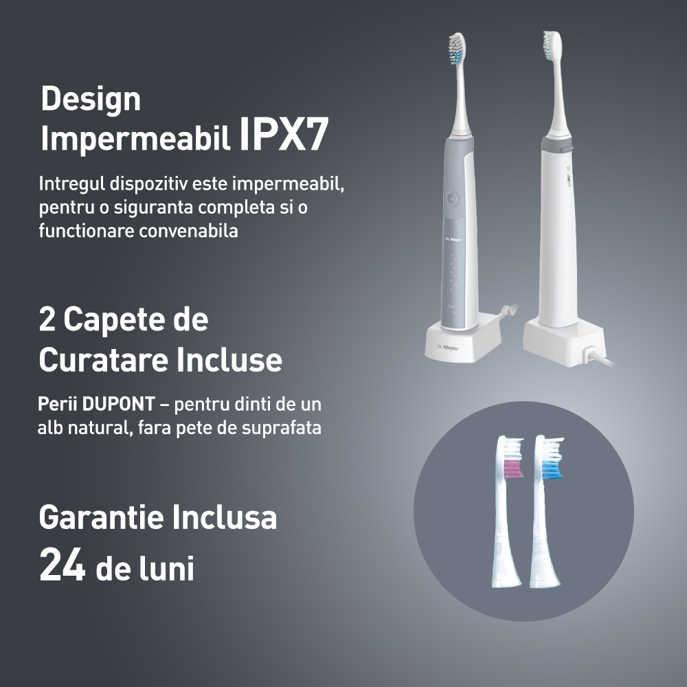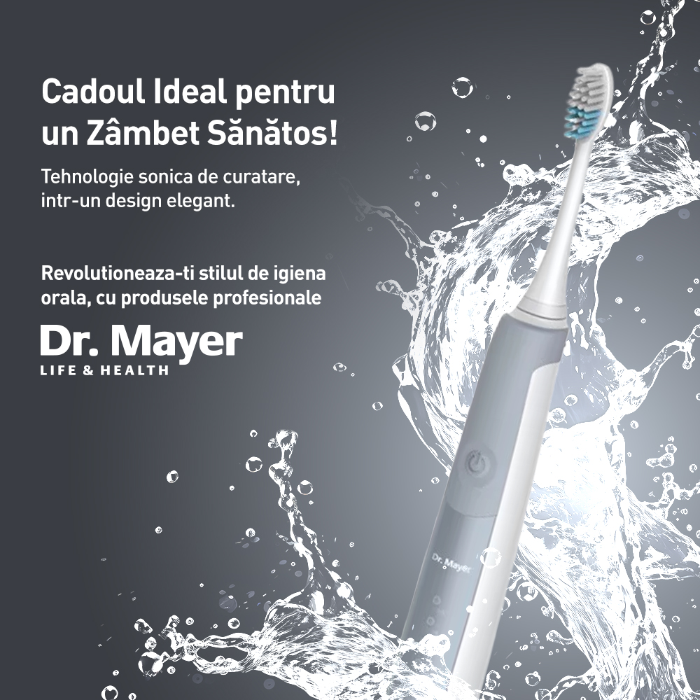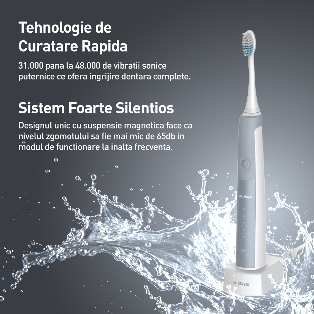 Periuta electrica sonica reincarcabila GTS2080 Black Dr. Mayer cu actiune de curatare puternica si dinamica in reducerea placii bacteriene, cu eficienta dovedita clinic.