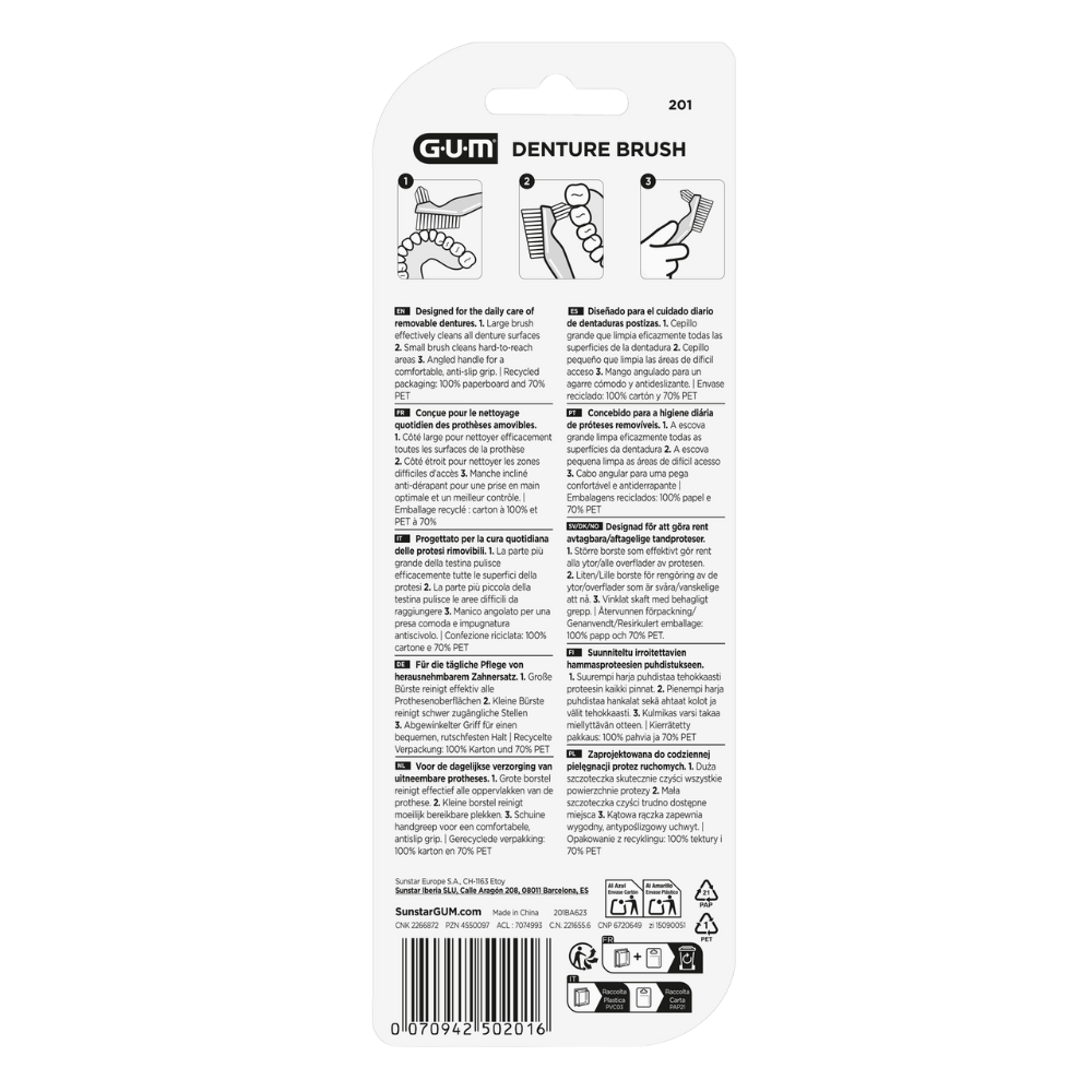 Periuta Gum Denture pentru proteza este special conceputa pentru curatarea eficienta si delicata a protezelor dentare. Datorita designului sau functional, cu perie plata si perie conica, aceasta periuta permite indepartarea resturilor alimentare, placii si depunerilor din toate zonele protezei, inclusiv din cele greu accesibile. Perii din nailon rezistent asigura o curatare temeinica fara a deteriora materialul protezei, contribuind la mentinerea igienei orale si a confortului zilnic.