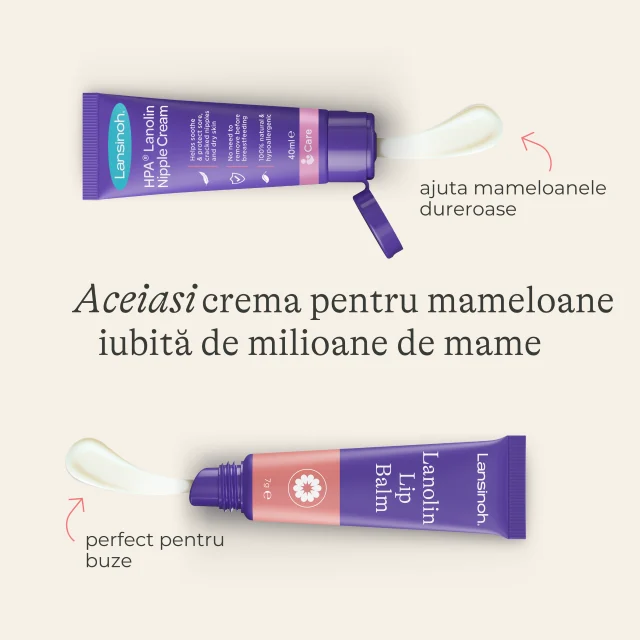 - ● Lanolina balsam de buze de la Lansinoh este o crema hidratanta bogata si eficienta, care ajuta la calmarea si protejarea buzelor foarte uscate.