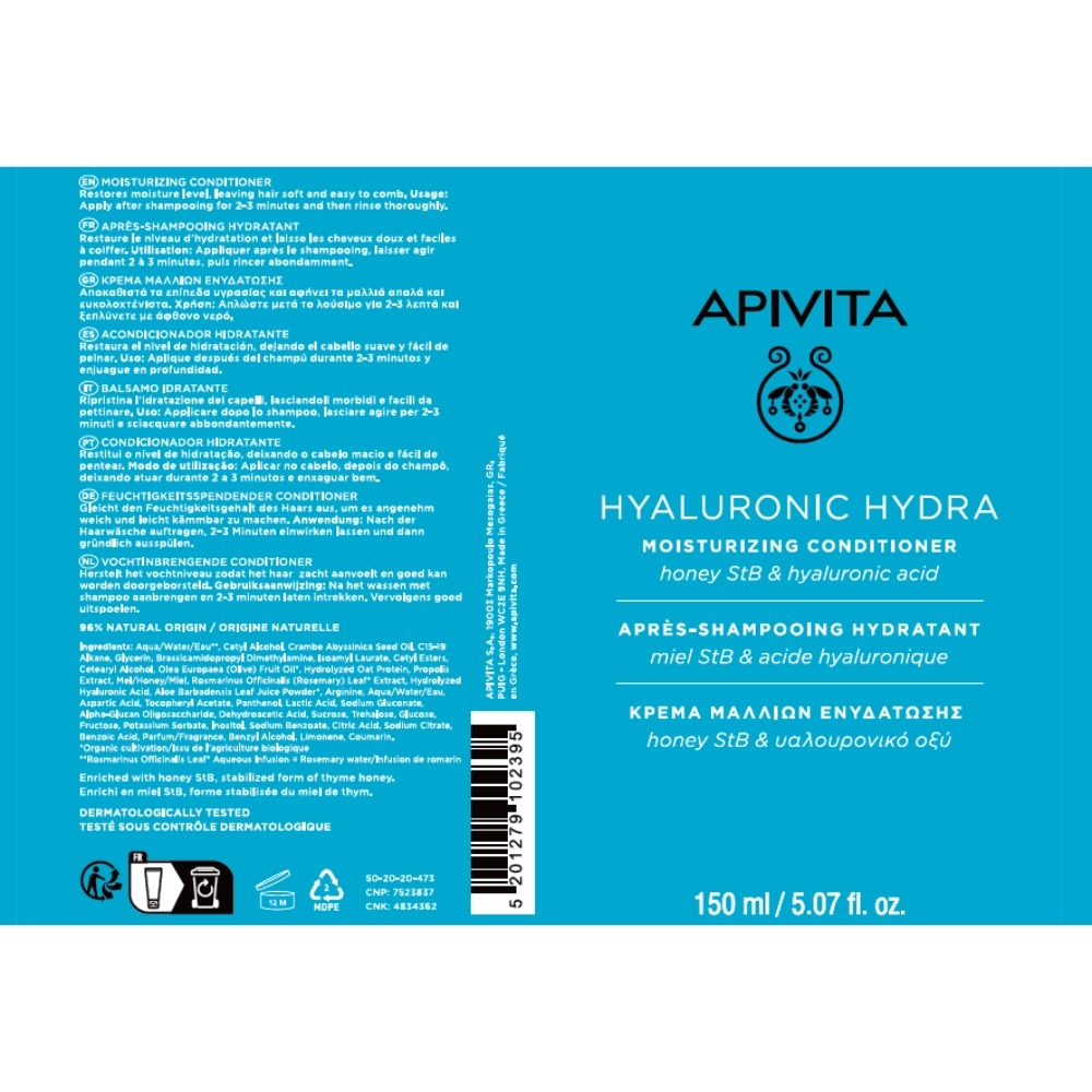 • Hidratează intens prin restabilirea nivelului de umiditate din interiorul fibrei părului, cu acid hialuronic, extract de aloe, miere de cimbru și proteine de ovăz;