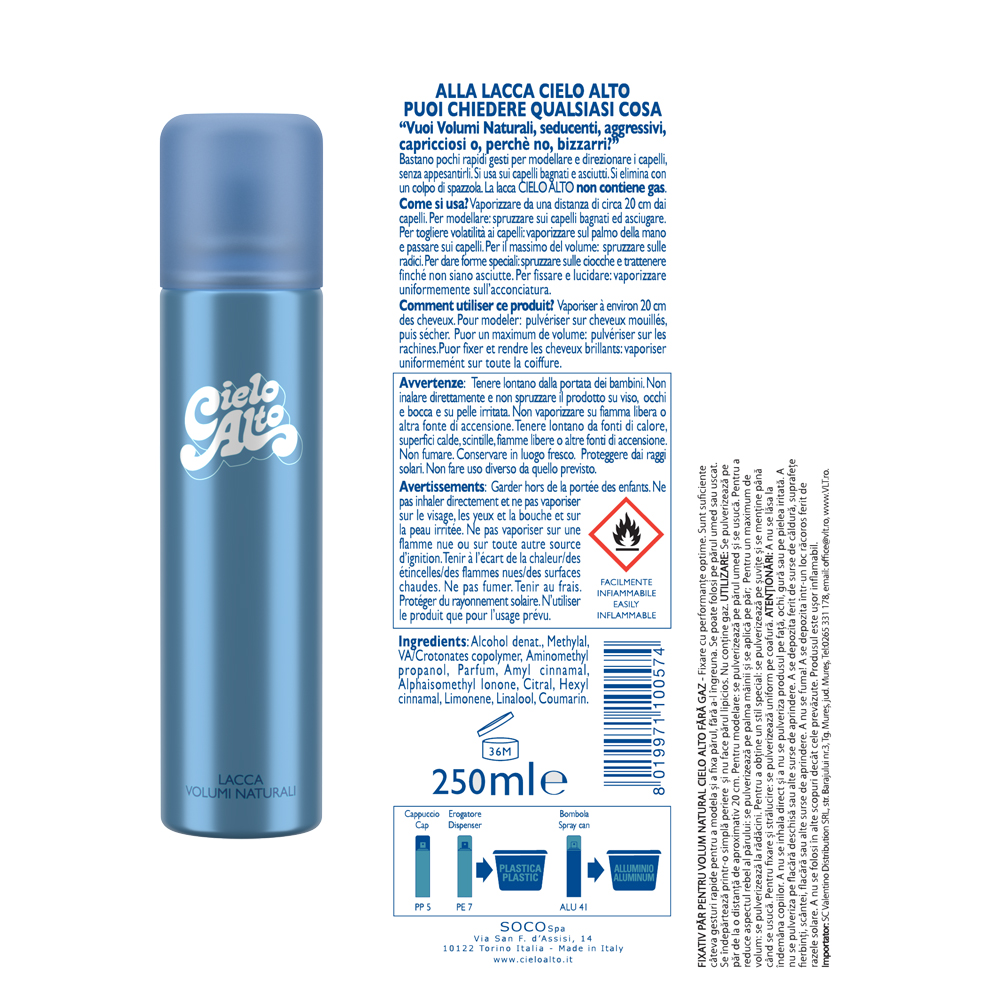 Fixativ pentru păr, fără gaz, conceput pentru a oferi volum și fixare eficientă, fără a îngreuna firul de păr. Formula permite modelarea rapidă a coafurii, menținând un aspect natural, flexibil și fără senzație lipicioasă.