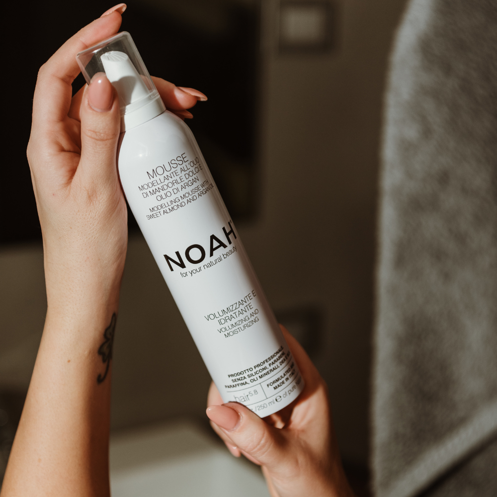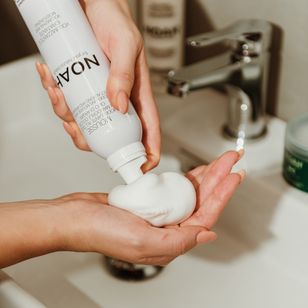 Spuma modelatoare Noah ofera textura si elasticitate parului drept sau ondulat