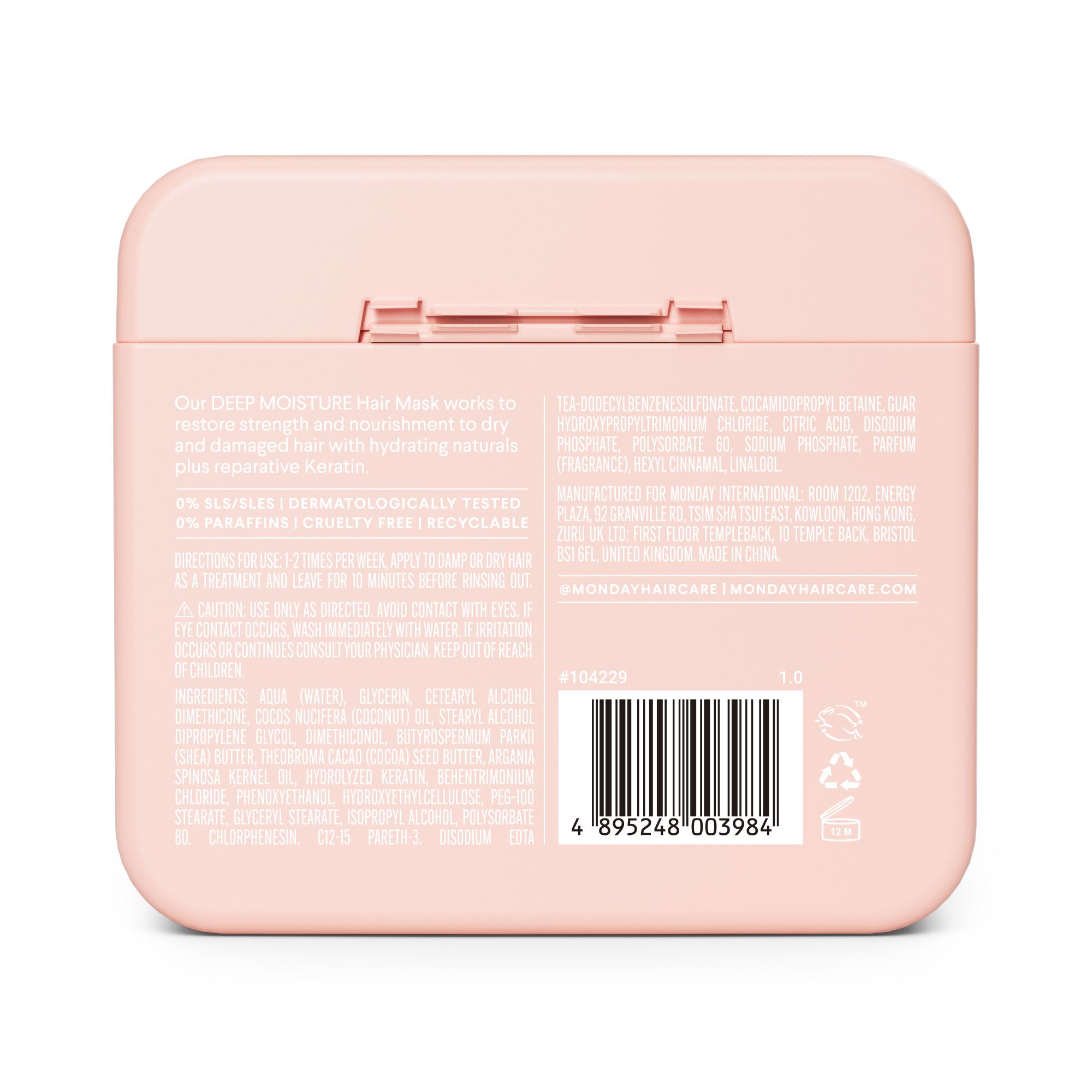 Monday Haircare Deep Moisture Mask oferă un tratament intensiv de hidratare È™i reparare pentru părul uscat, deteriorat sau lipsit de vitalitate. Formula sa bogată în ingrediente naturale È™i Keratină acÈ›ionează în profunzime, redând elasticitatea, supleÈ›ea È™i strălucirea naturală a părului.