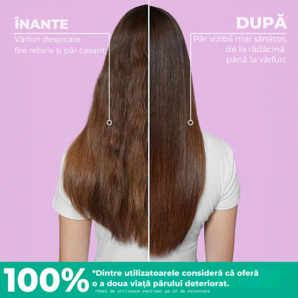Descoperă masca și balsamul 2 în 1 Energie Fruit cu colagen vegetal și vitamina B, tratamentul intensiv ce repară în profunzime părul foarte deteriorat, fragil sau afectat de tratamente chimice. Formula sa vegană, fără sulfați și cu pH neutru, regenerează fibra capilară, redă suplețea și strălucirea naturală, oferind până la 72 de ore de protecție și hidratare intensă.