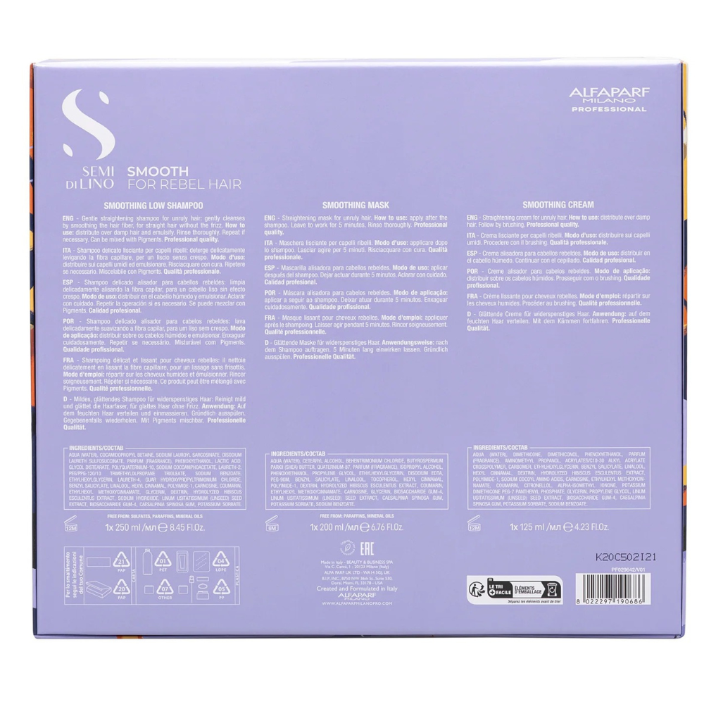 Holiday Kit SDL Smooth Alfaparf Milano este un set premium pentru îngrijirea părului rebel, care hidratează intens, netezește și protejează fibra capilară de efectele umidității și poluării. Formulele vegane din gama Semi di Lino Smooth oferă strălucire de durată, disciplinare eficientă și o senzație de păr mătăsos, ușor de coafat. Un cadou elegant, perfect pentru un look impecabil în orice sezon.