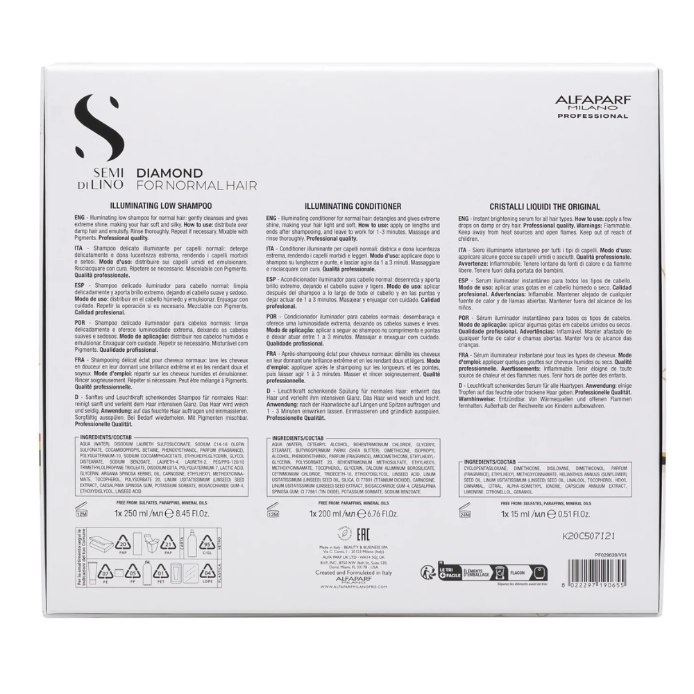 Redescopera stralucirea parului tau cu Holiday Kit SDL Diamond de la Alfaparf Milano, un set premium din gama Semi di Lino, creat pentru a revitaliza, proteja si ilumina parul normal. Formula sa vegana, imbogatita cu ingrediente active exclusive – ulei de argan, seminte de in, unt de shea si complex multivitaminic – ofera un tratament complet: curatare delicata, hidratare profunda si protectie impotriva factorilor externi. Fiecare produs este conceput pentru a reda parului vitalitate, catifelare si o stralucire spectaculoasa, de durata. Ideal ca set cadou sau pentru o rutina completa de ingrijire profesionala acasa.