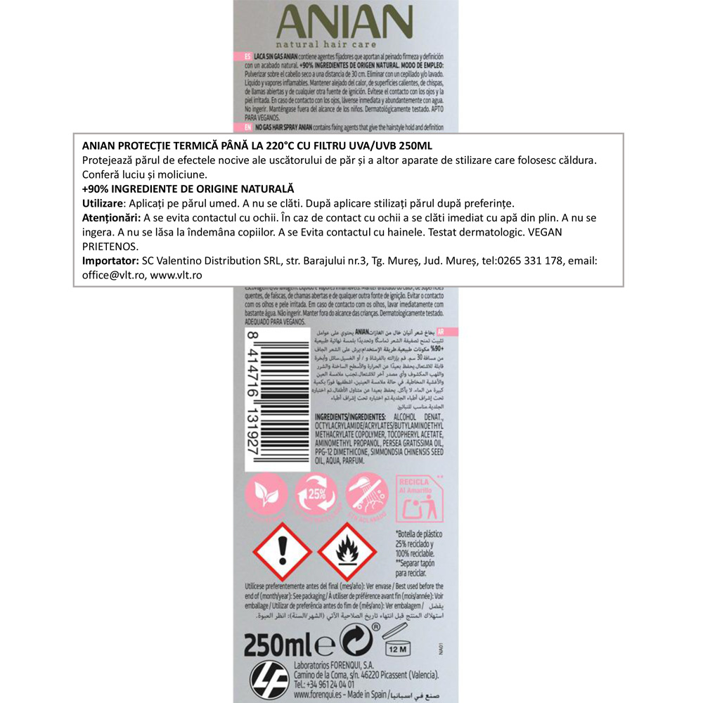 spray cu protectie termica pentru par Anian , pana la 220°C, cu filtru UVA/UVB, ofera luciu si moliciune
