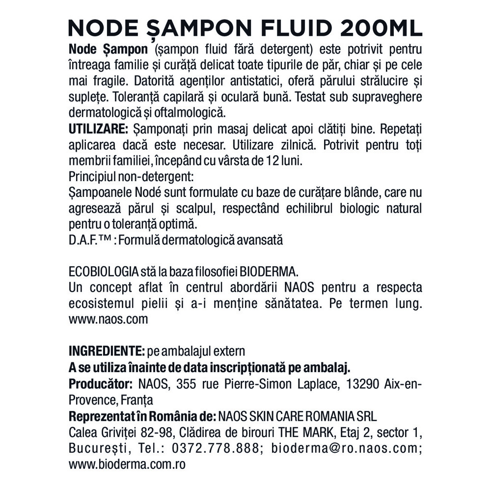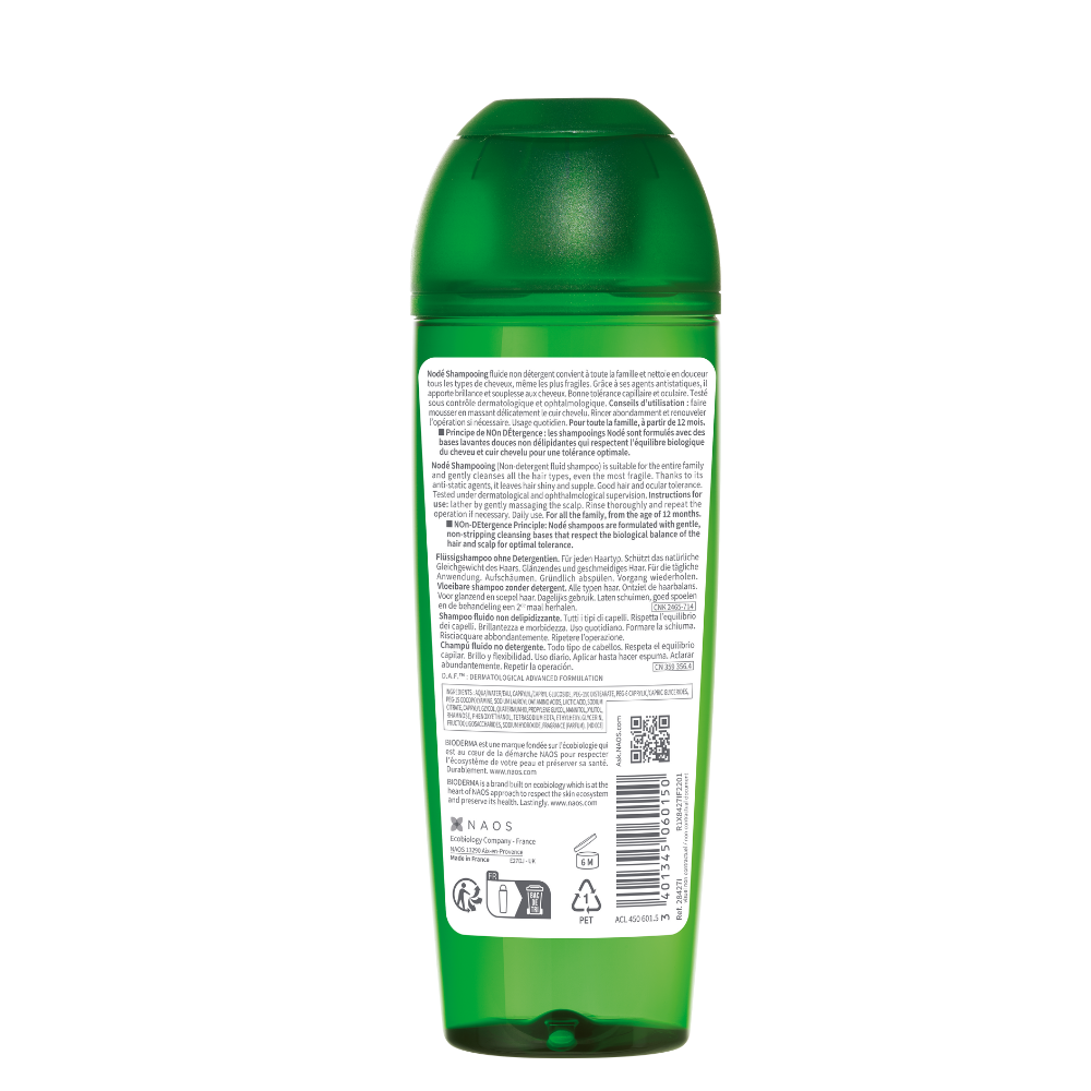 Bioderma Nodé Șampon Fluid este un șampon fără detergent, conceput pentru curățarea delicată a tuturor tipurilor de păr, inclusiv a celor fragile. Formula sa blândă respectă echilibrul biologic natural al scalpului și este potrivită pentru utilizare zilnică, de către întreaga familie.